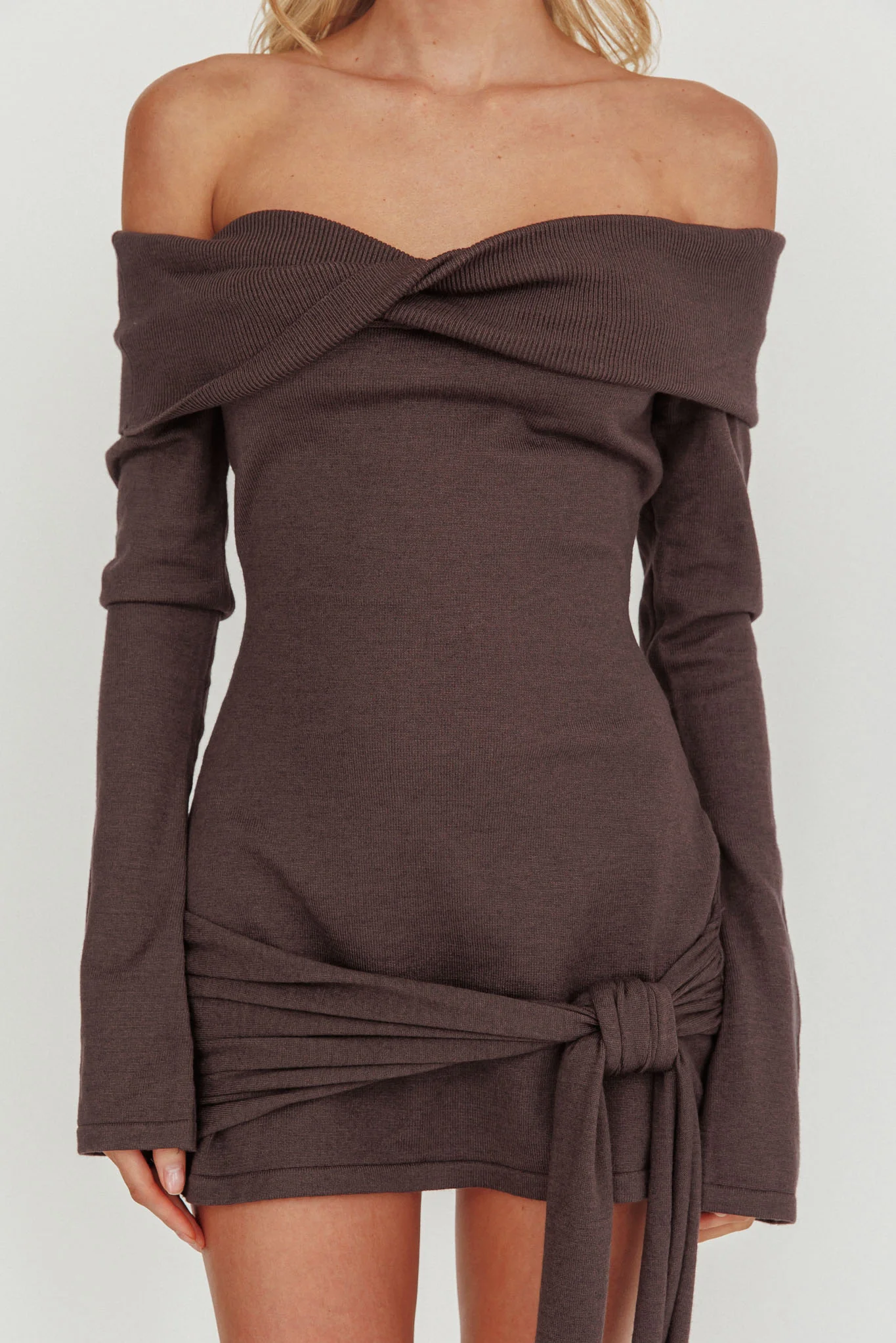 Sofina Off-Shoulder Hip Tie Mini Dress Grey