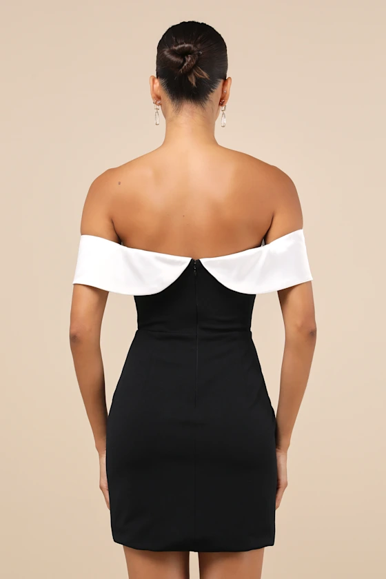 Extravagant Moment Black and White Off-the-Shoulder Mini Dress