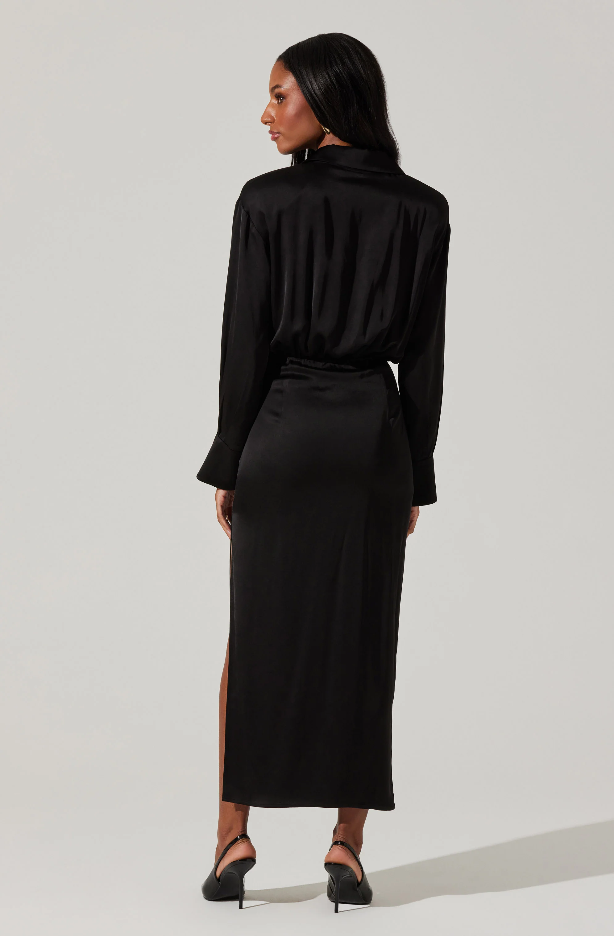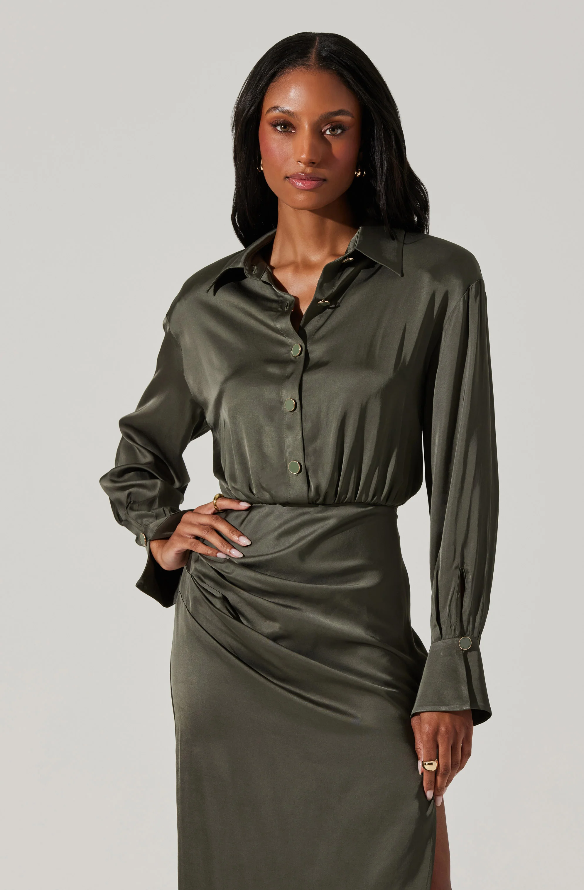 Elizabello Satin Midi Shirt Dress