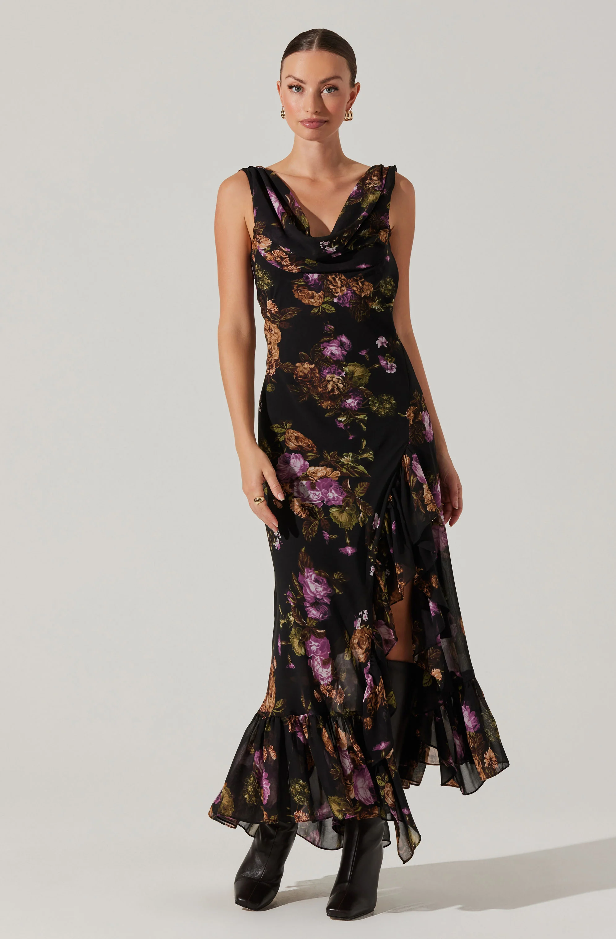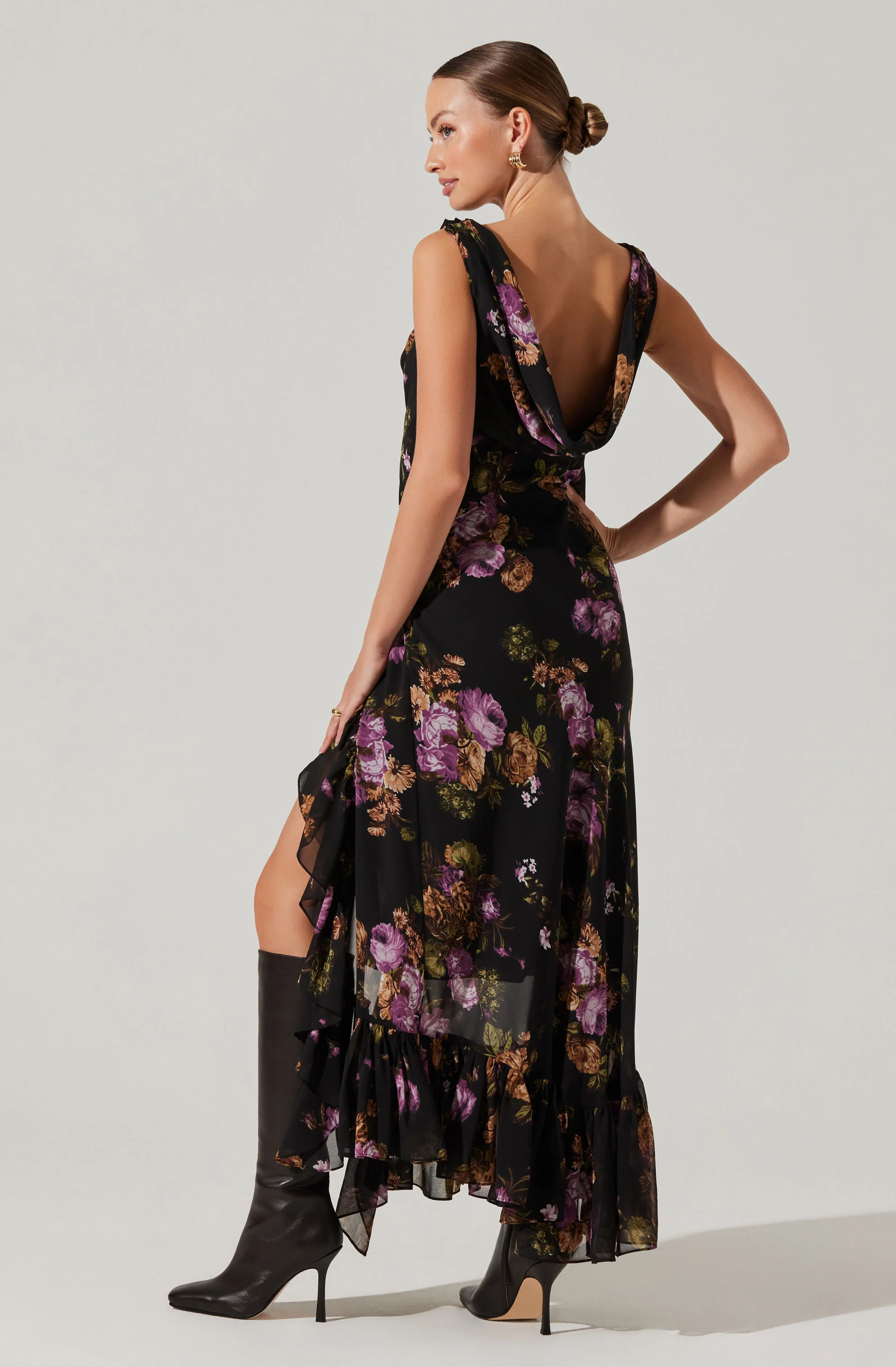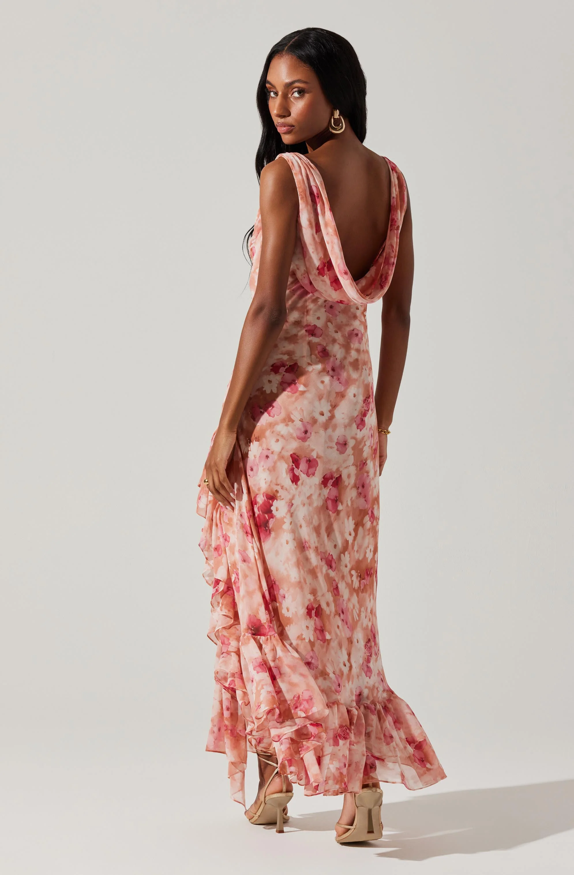Crinkle Satin Open Back Maxi Dress in Sky Blue