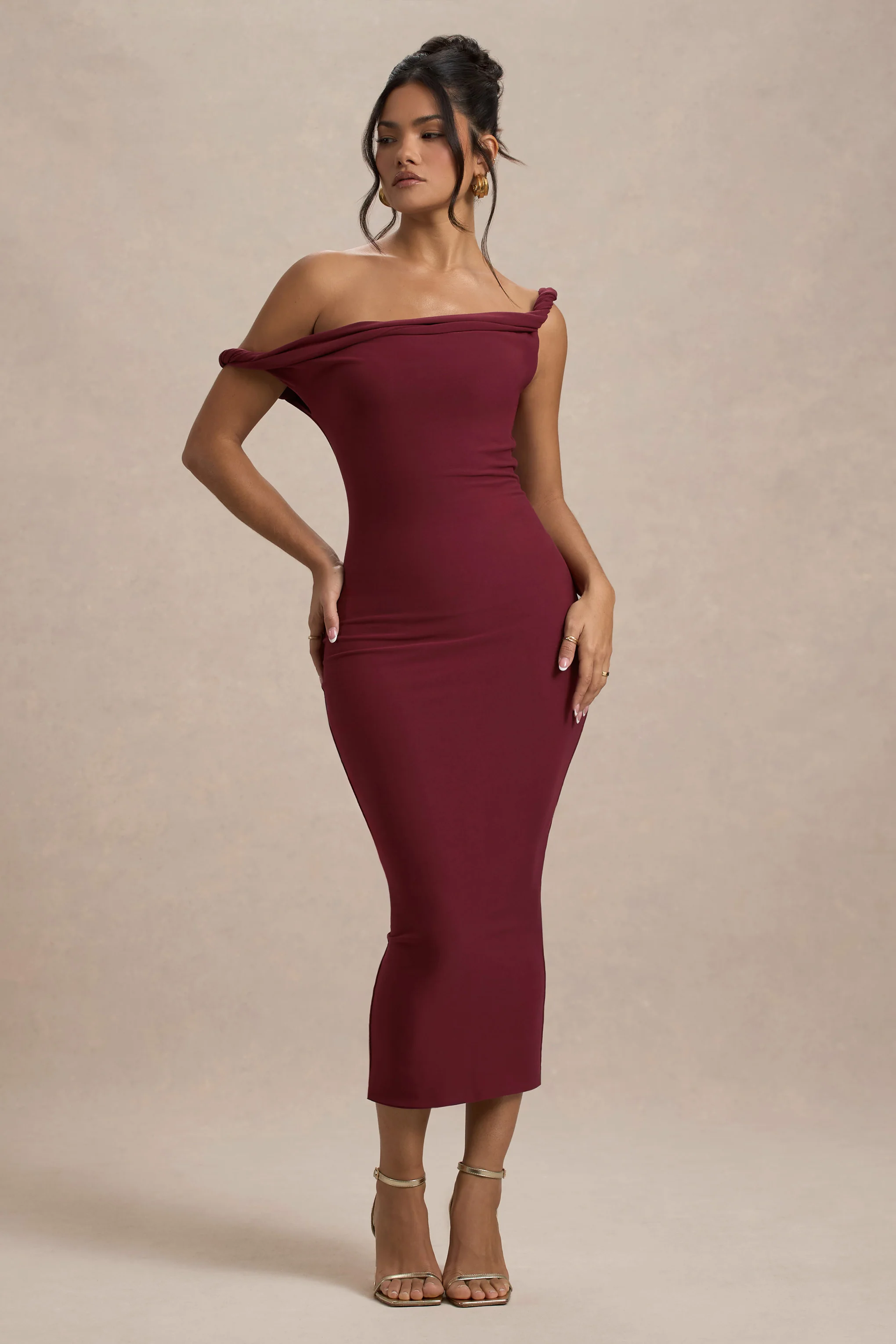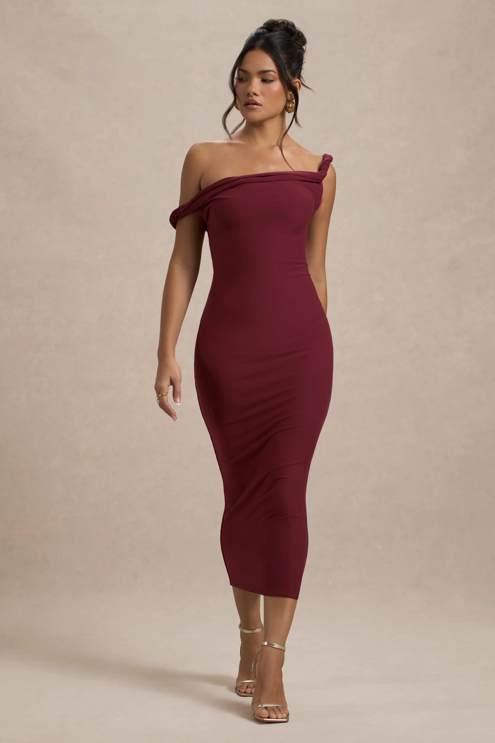 Enchant | Red Asymmetric Twisted Cape Midi Dress