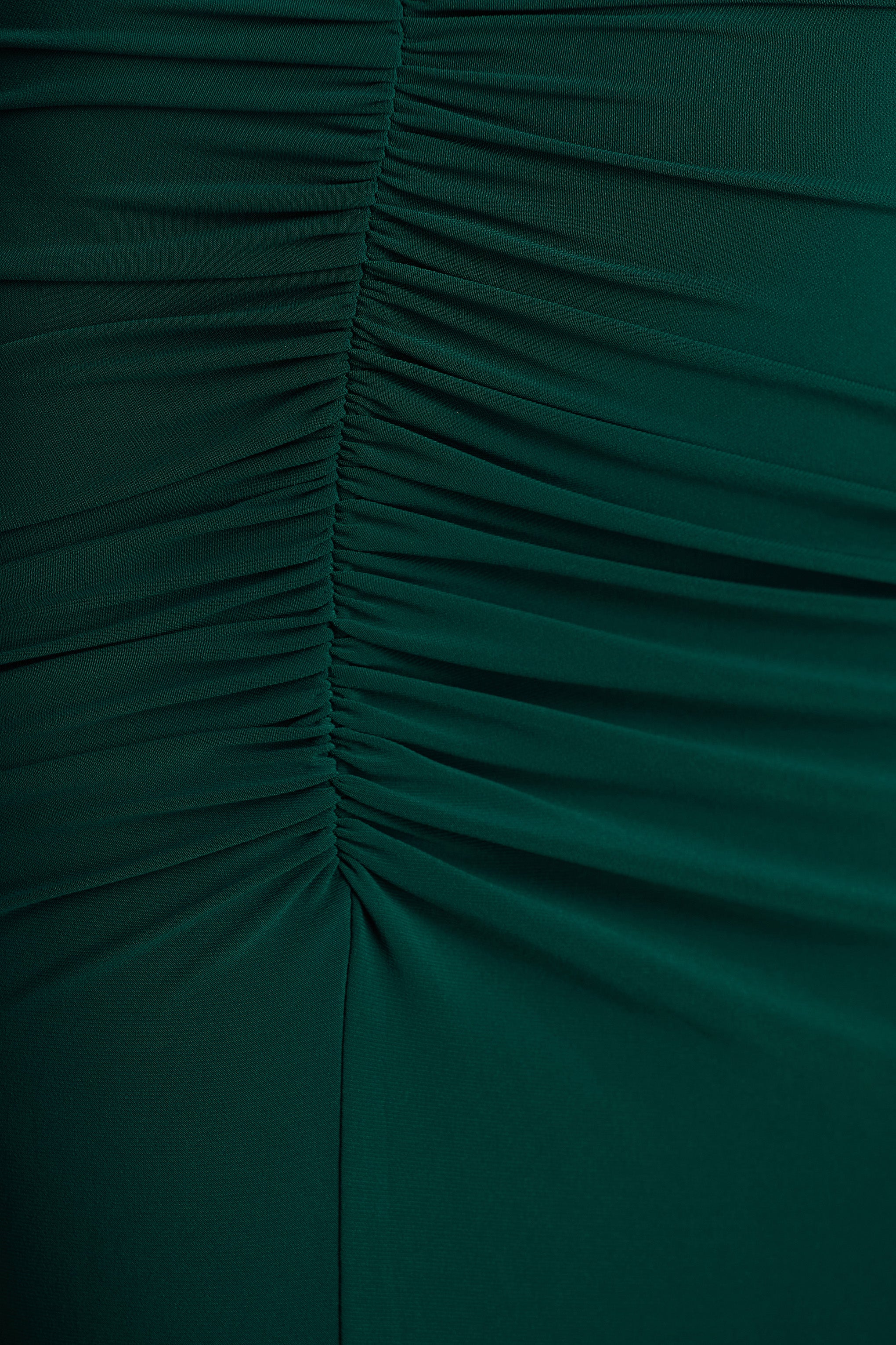 Cassandra | Bottle Green High-Neck Long-Sleeve Midi Dress