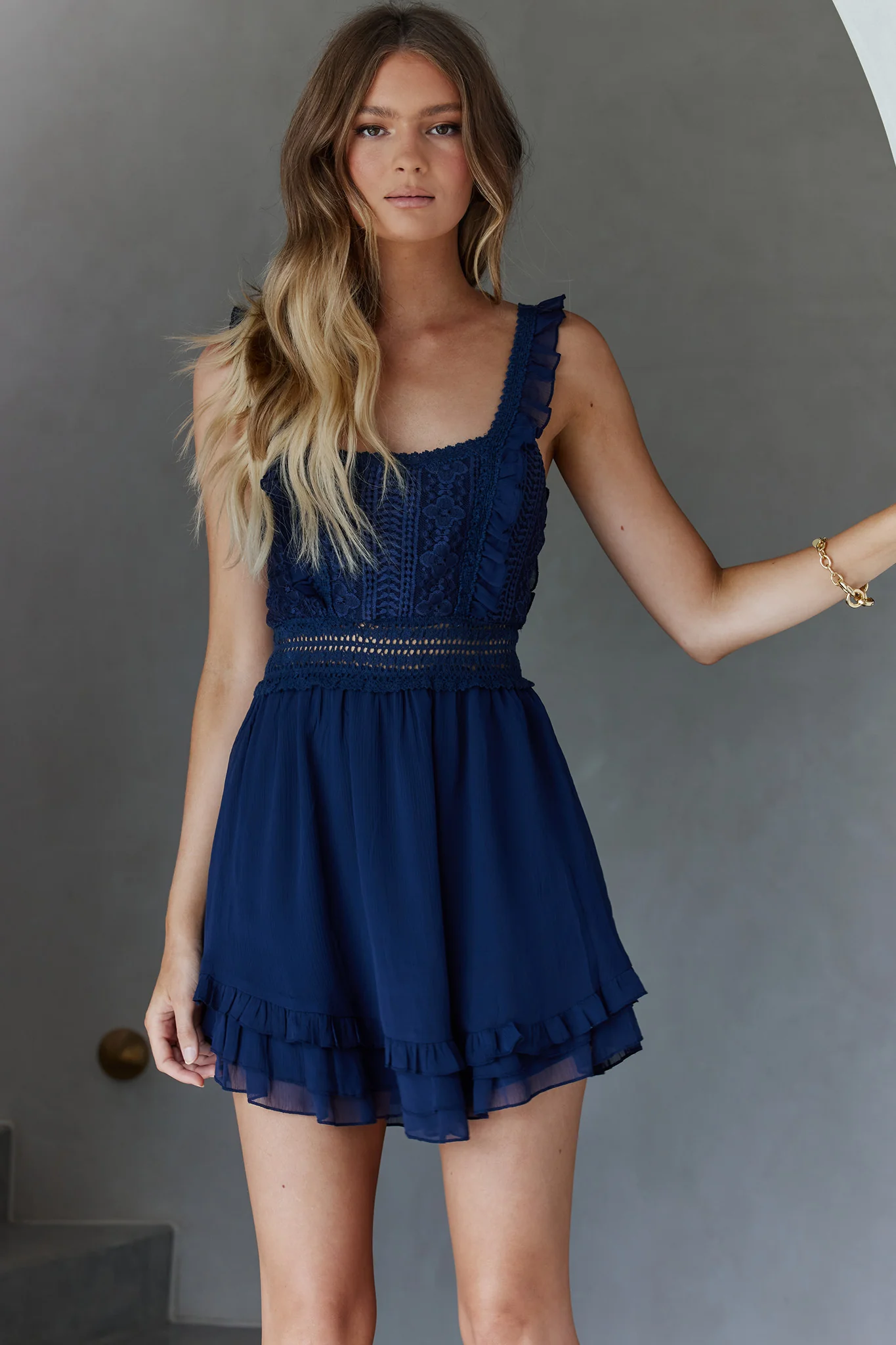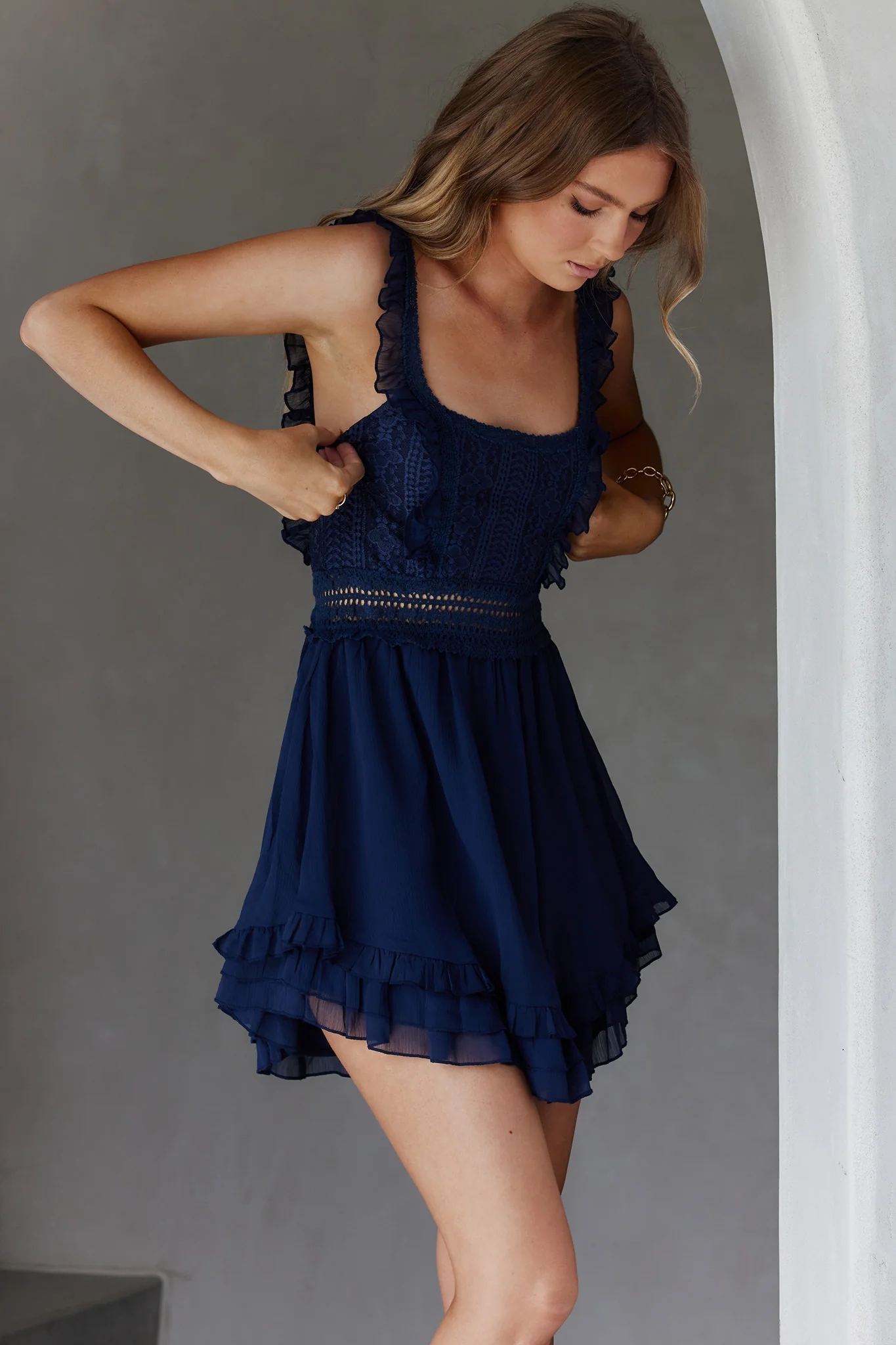 Winnie Lace Bodice Tie-Up Back Dress Navy