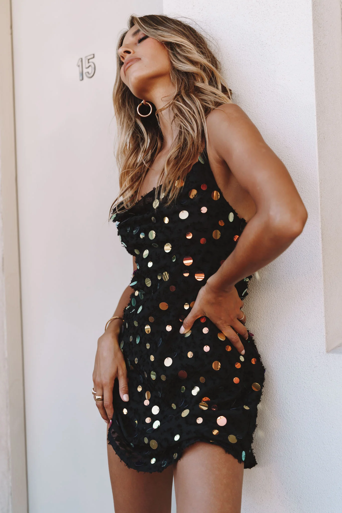Candid Moment Strappy Cowl Back Sequin Mini Dress Black