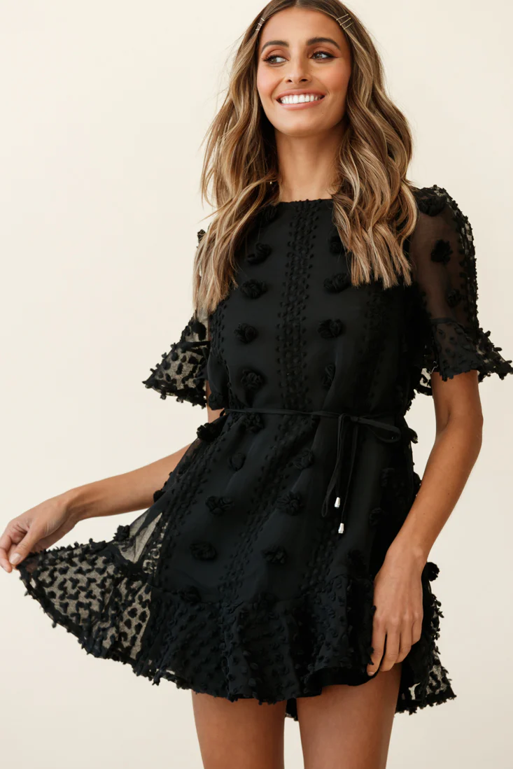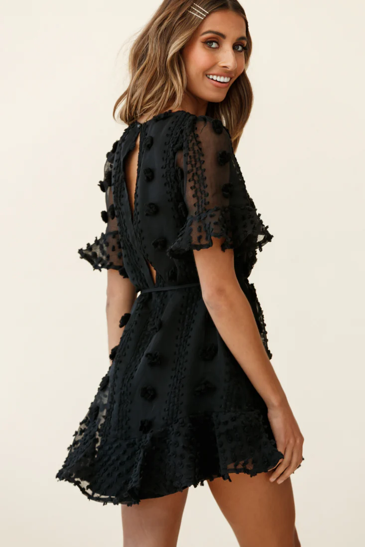 Maleny Embellished Fluted Hem Dress Black