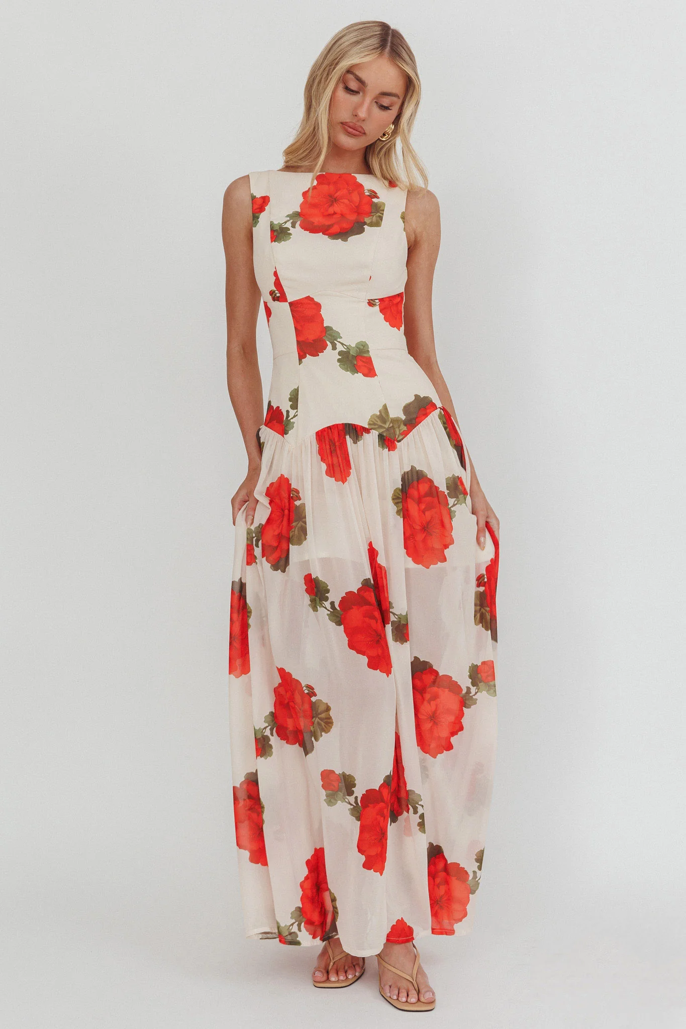 Opulent Low Back Maxi Dress Floral Rose