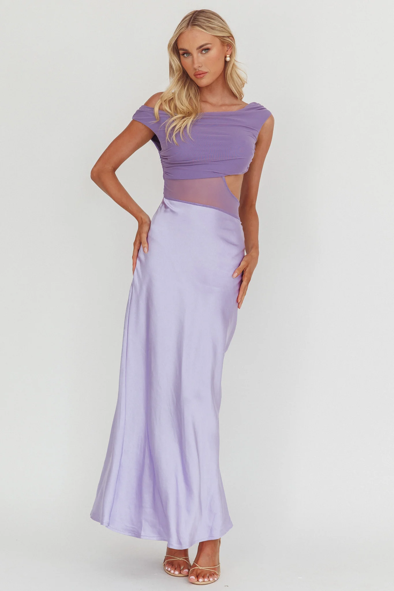 In Blooms Mesh Bodice Maxi Dress Lilac