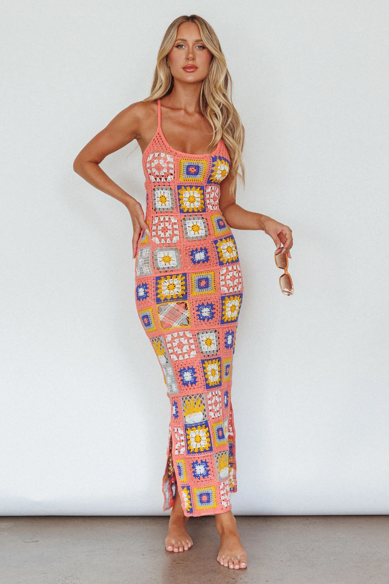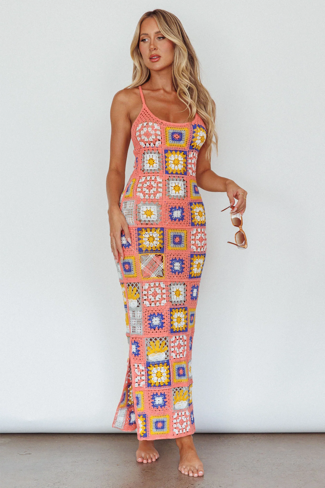 Bali Babe Crochet Maxi Dress Pink Multi