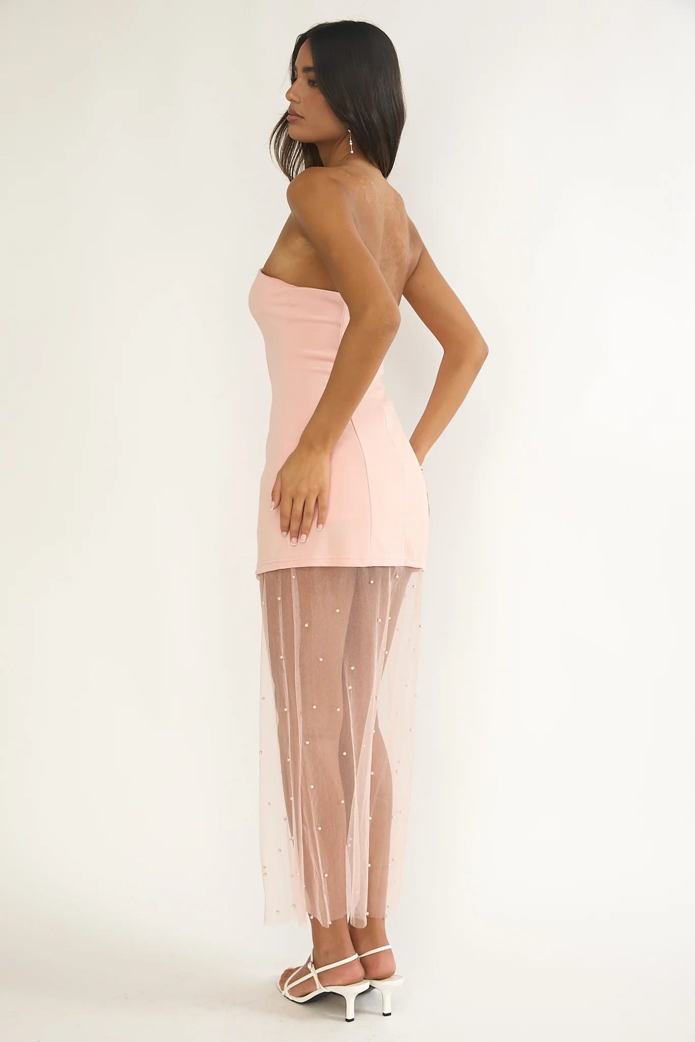 Coralie Sheer Pearl Hem Maxi Dress Peach