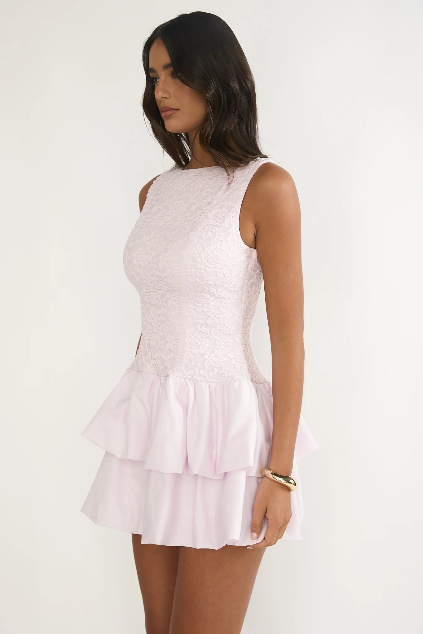 Dalisse Tiered Bubble Hem Mini Dress Lilac