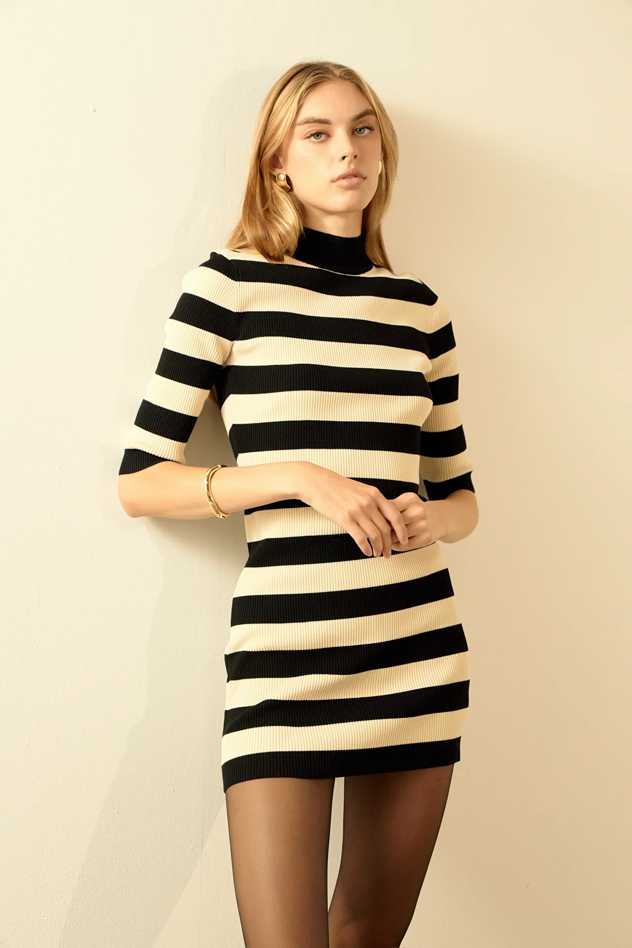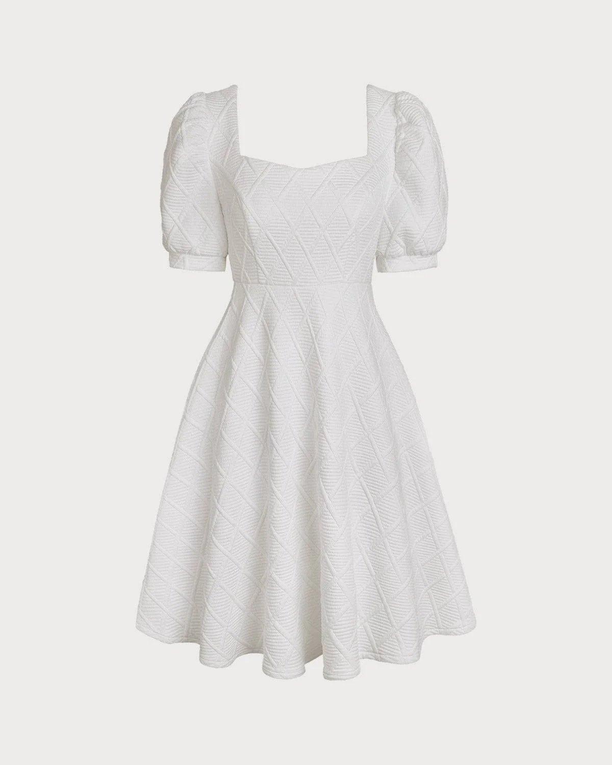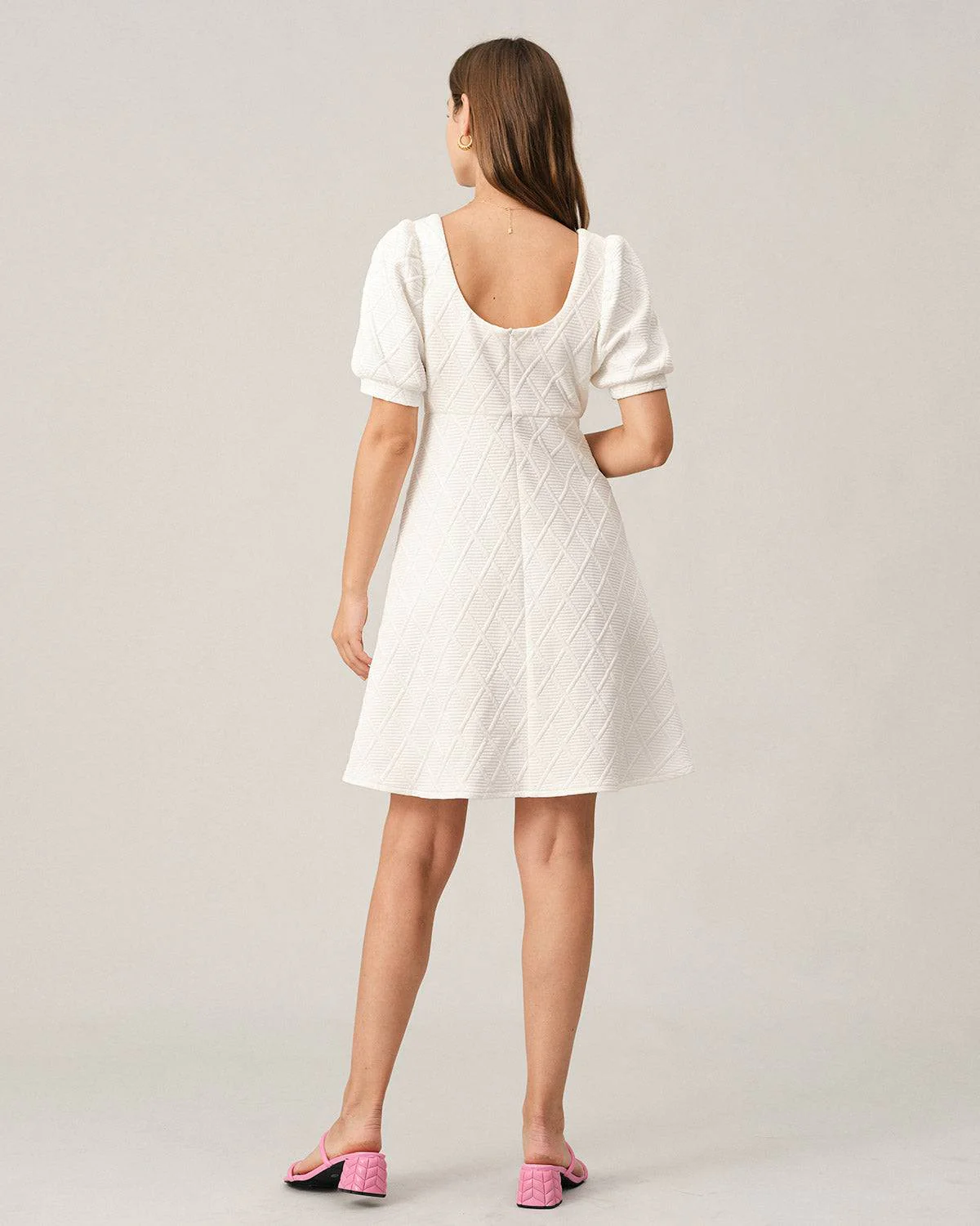 Women's White Boat Neck Jacquard Cotton Mini Dress