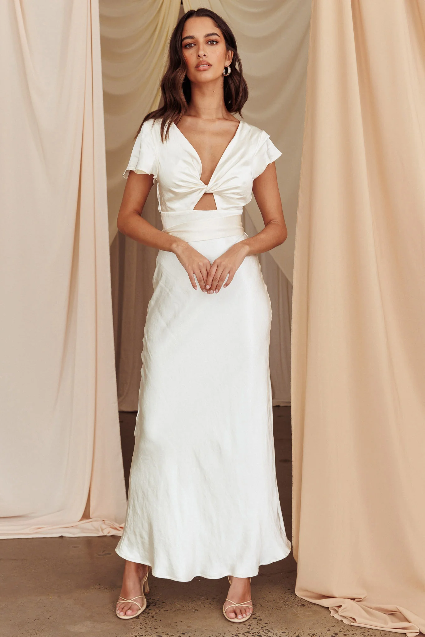 Blaise Asymmetric Neckline Maxi Dress Apricot