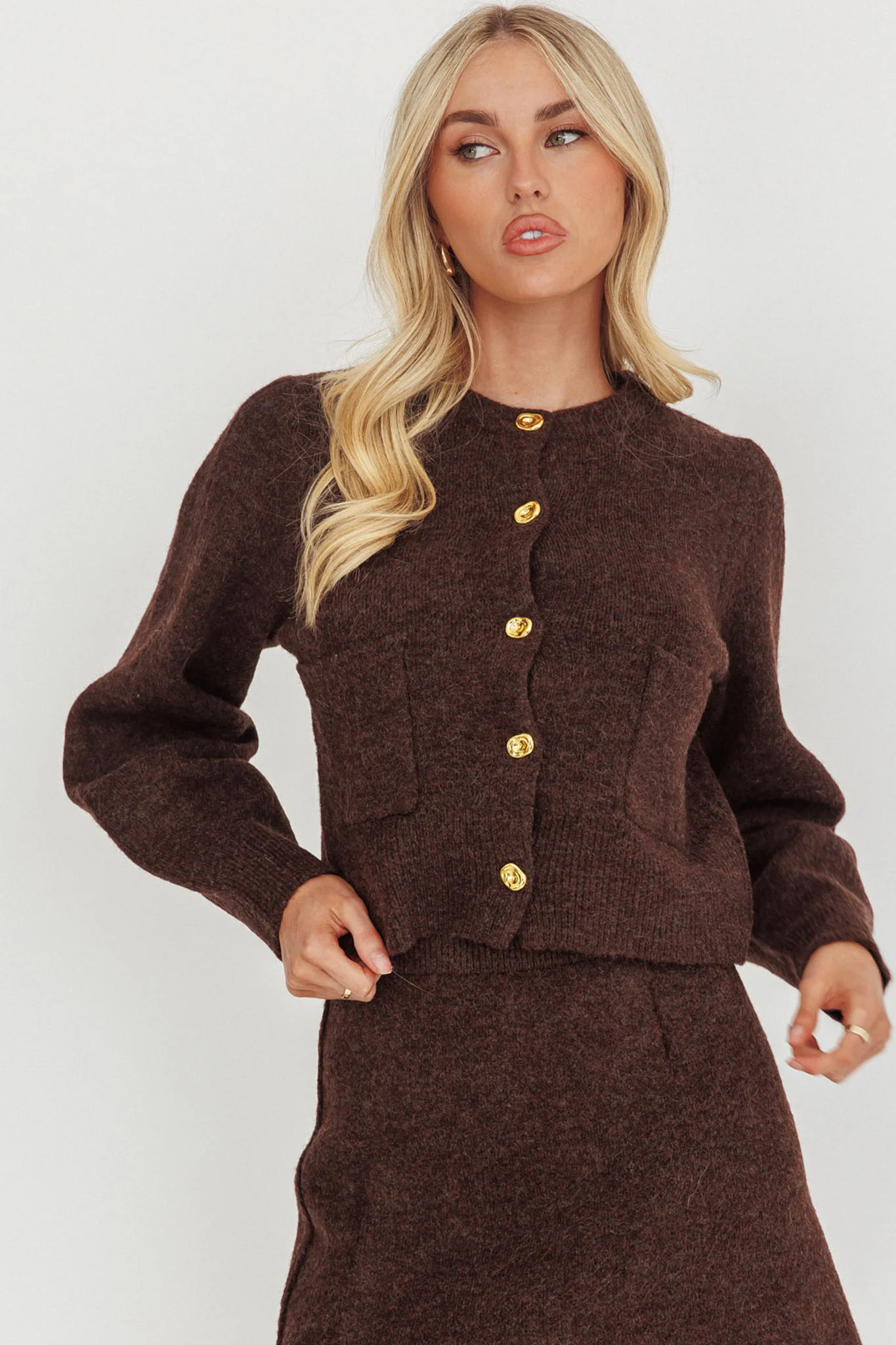 Daelyn Gold Button Pocket Cardigan Coffee