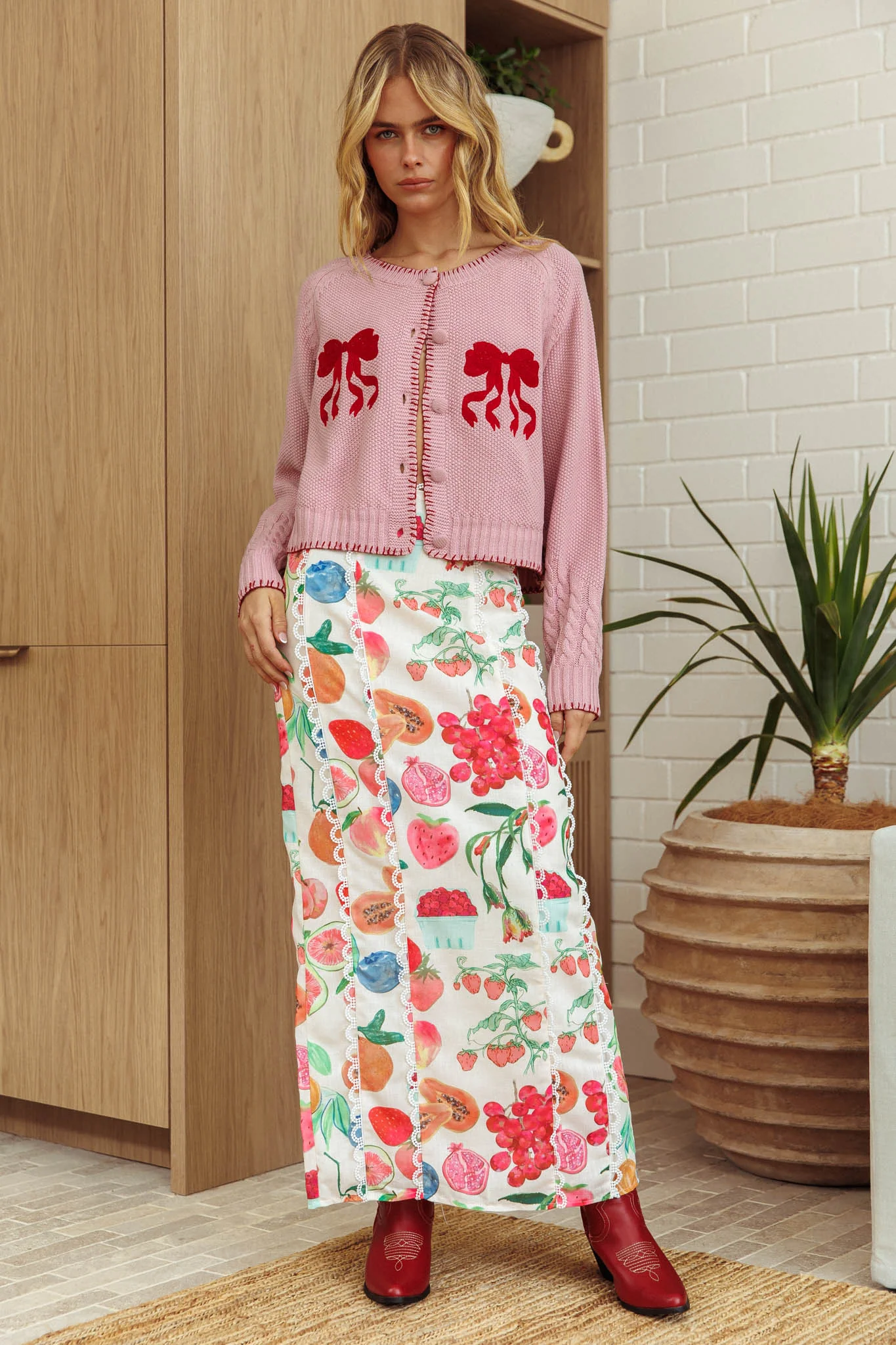 Tera Velvet Bow Cardigan Red