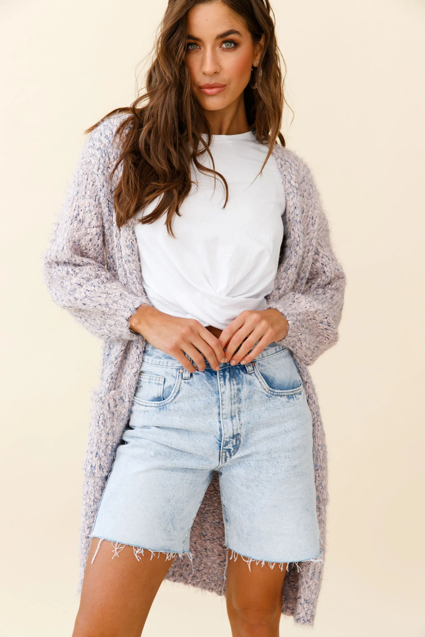 Johanna Long Sleeve Pocket Cardigan Mottled Pink