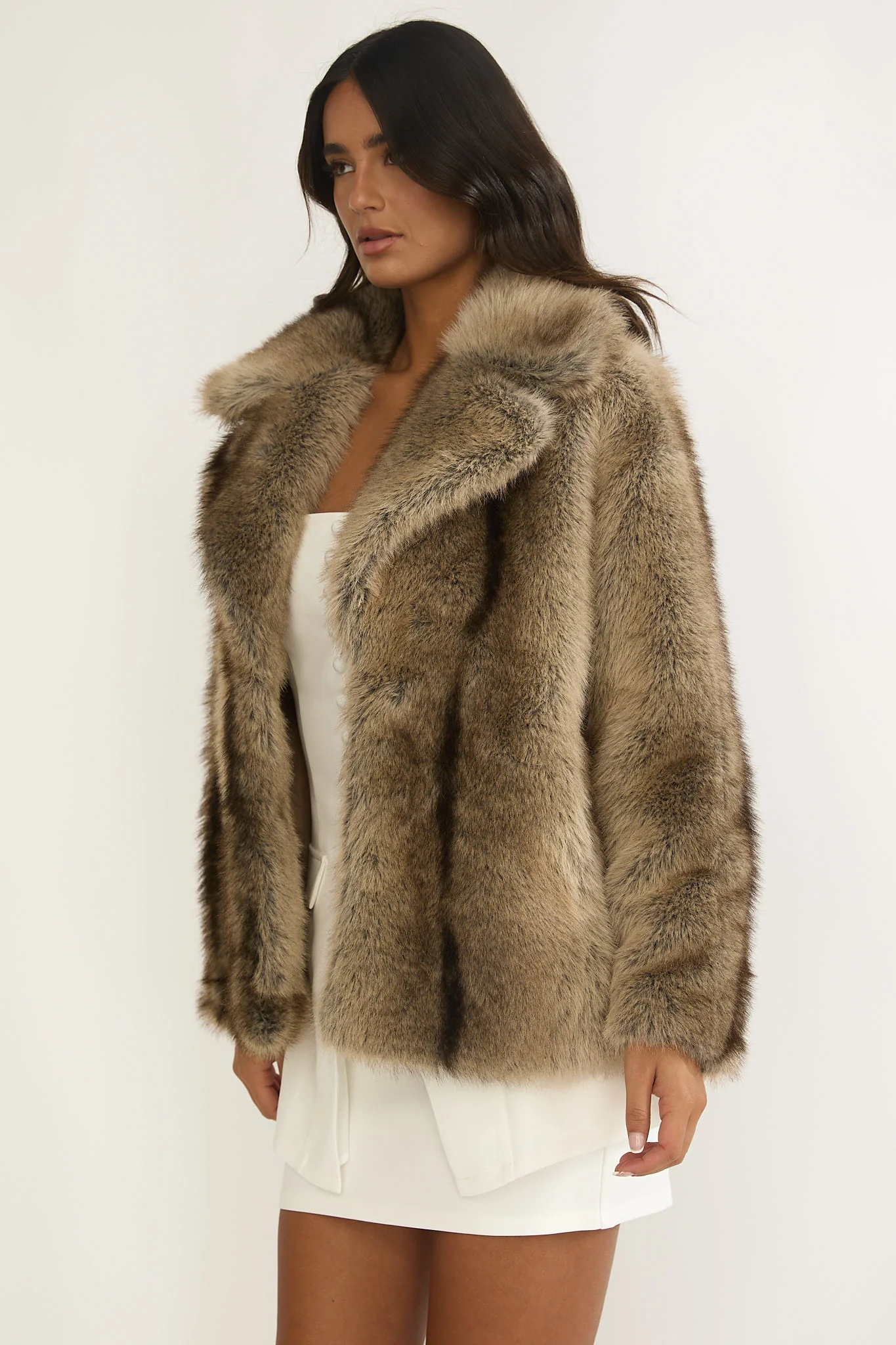 Soraya Notch Lapel Faux Fur Coat Brown
