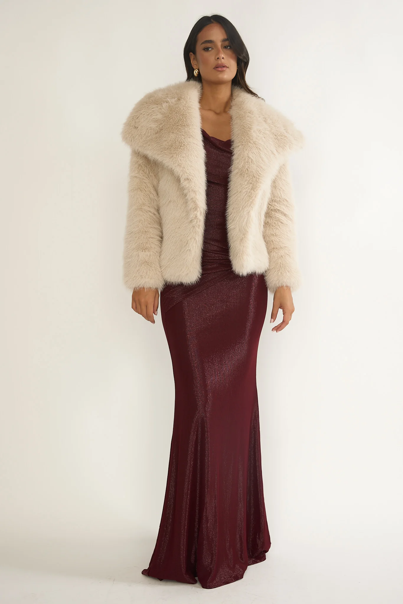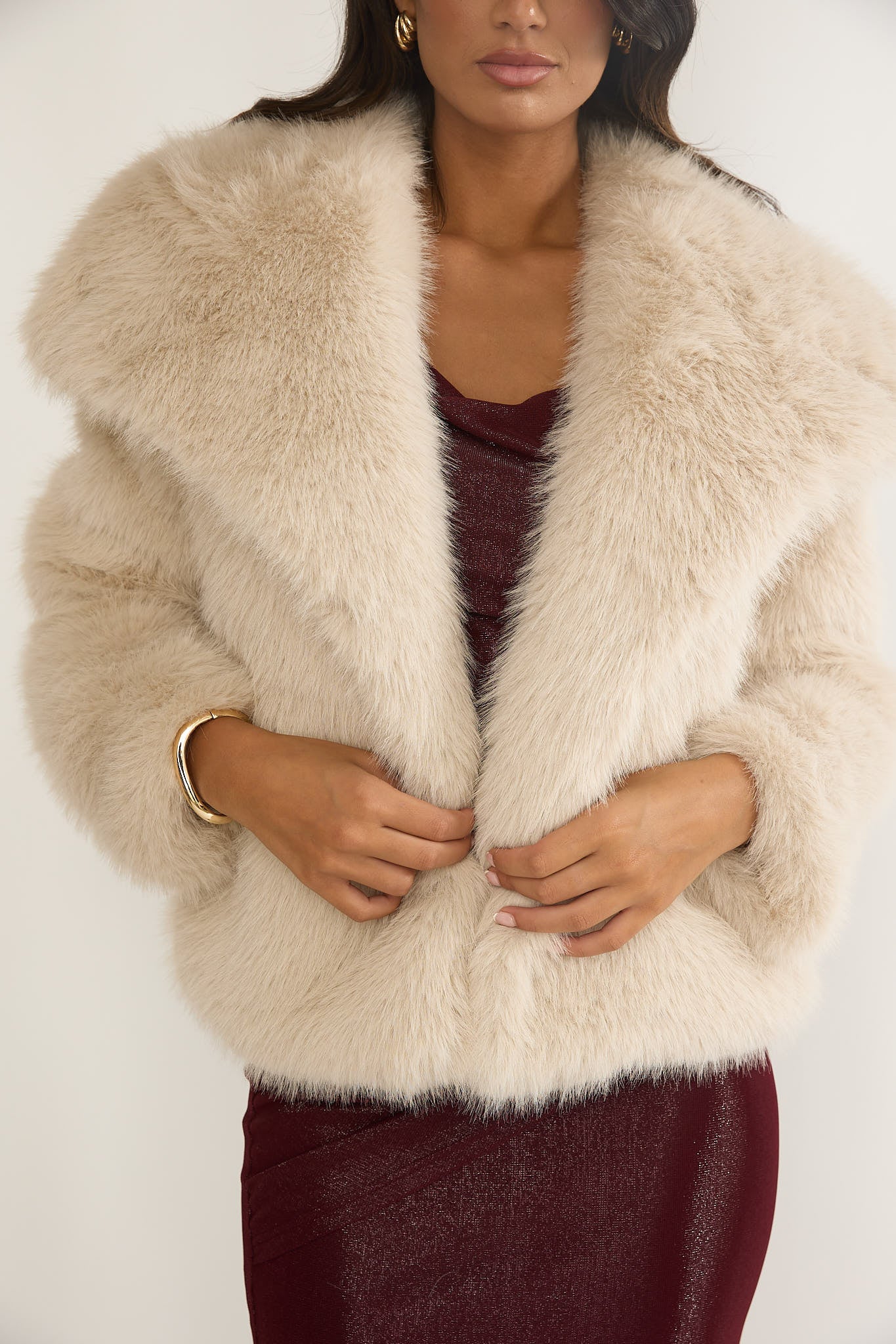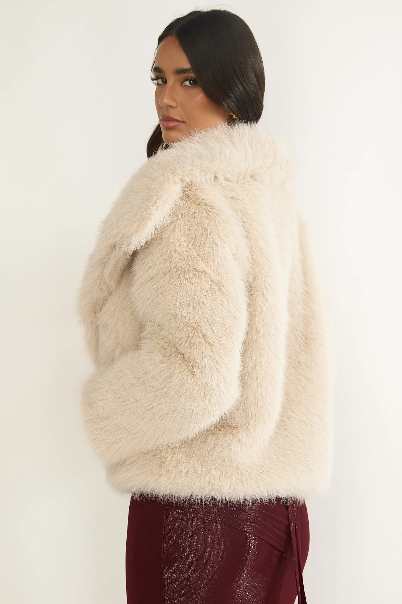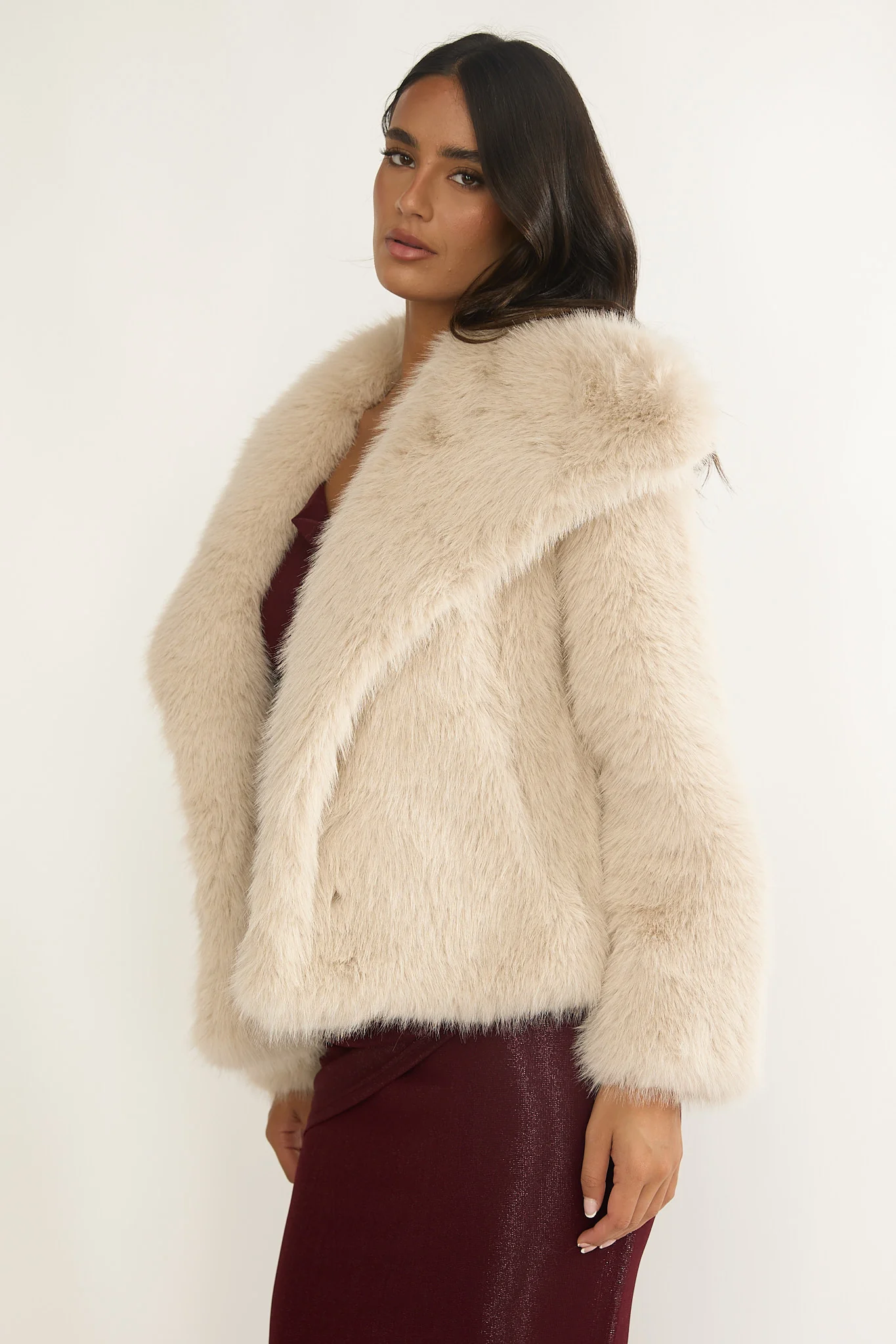 Harlequinn Oversized Lapel Faux Fur Jacket Taupe