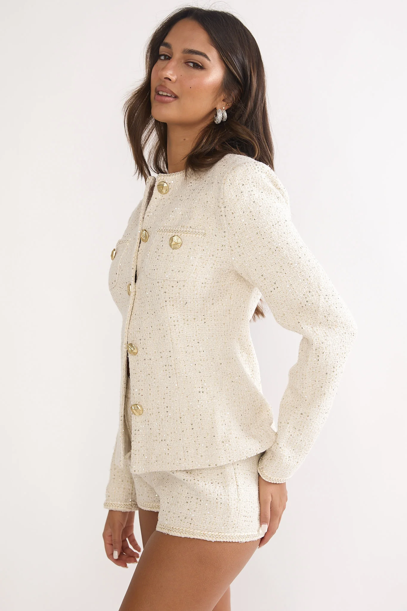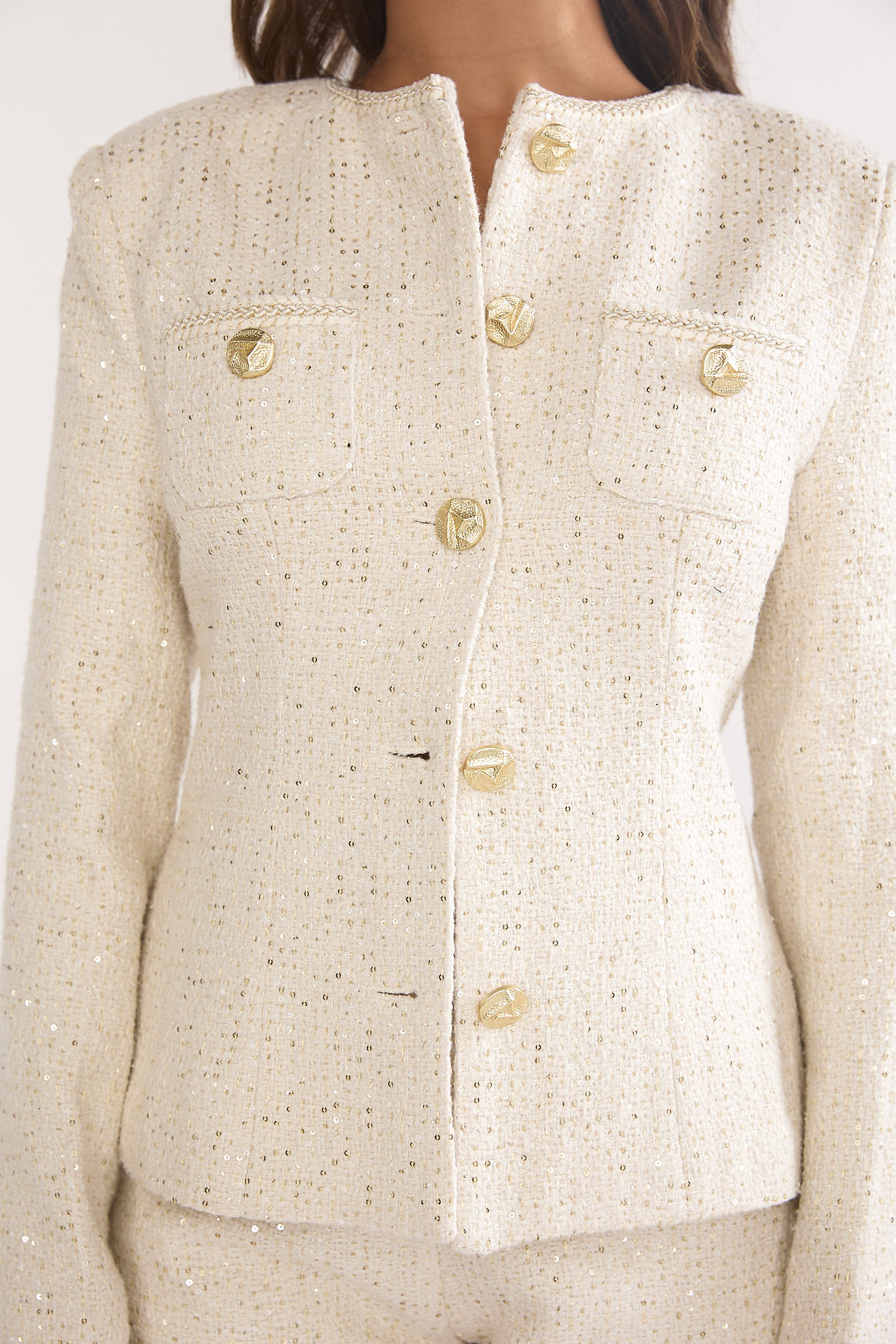 Kyomi Gold Button Tweed Jacket Whitegold