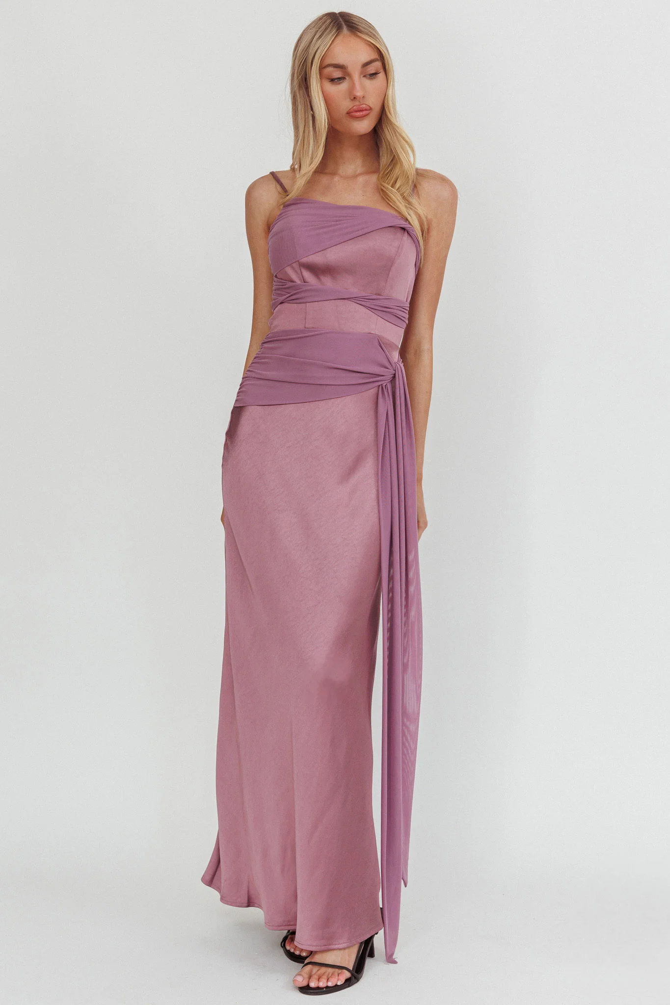 Oliana Twist Bust Lace Maxi Dress Lilac