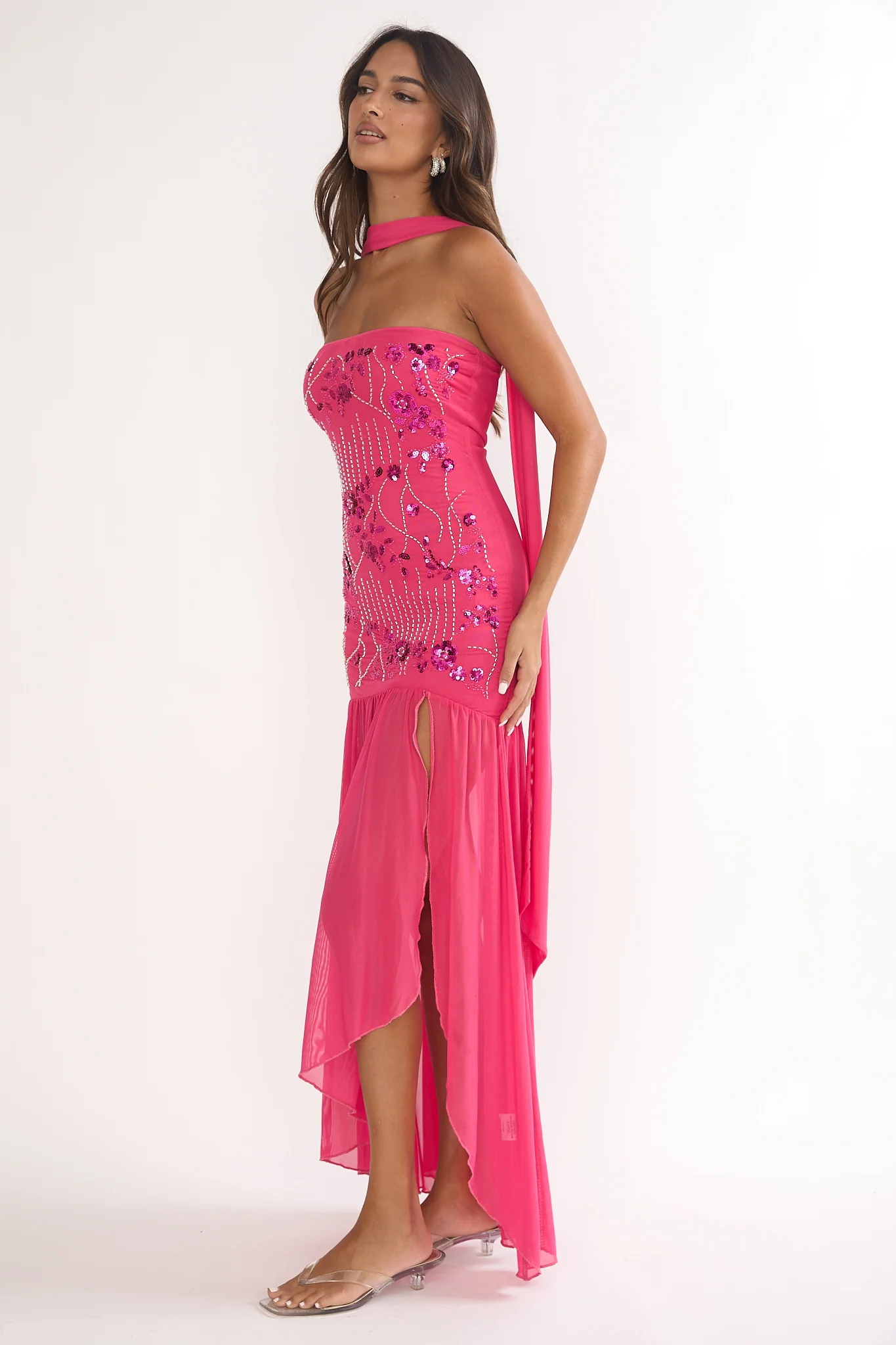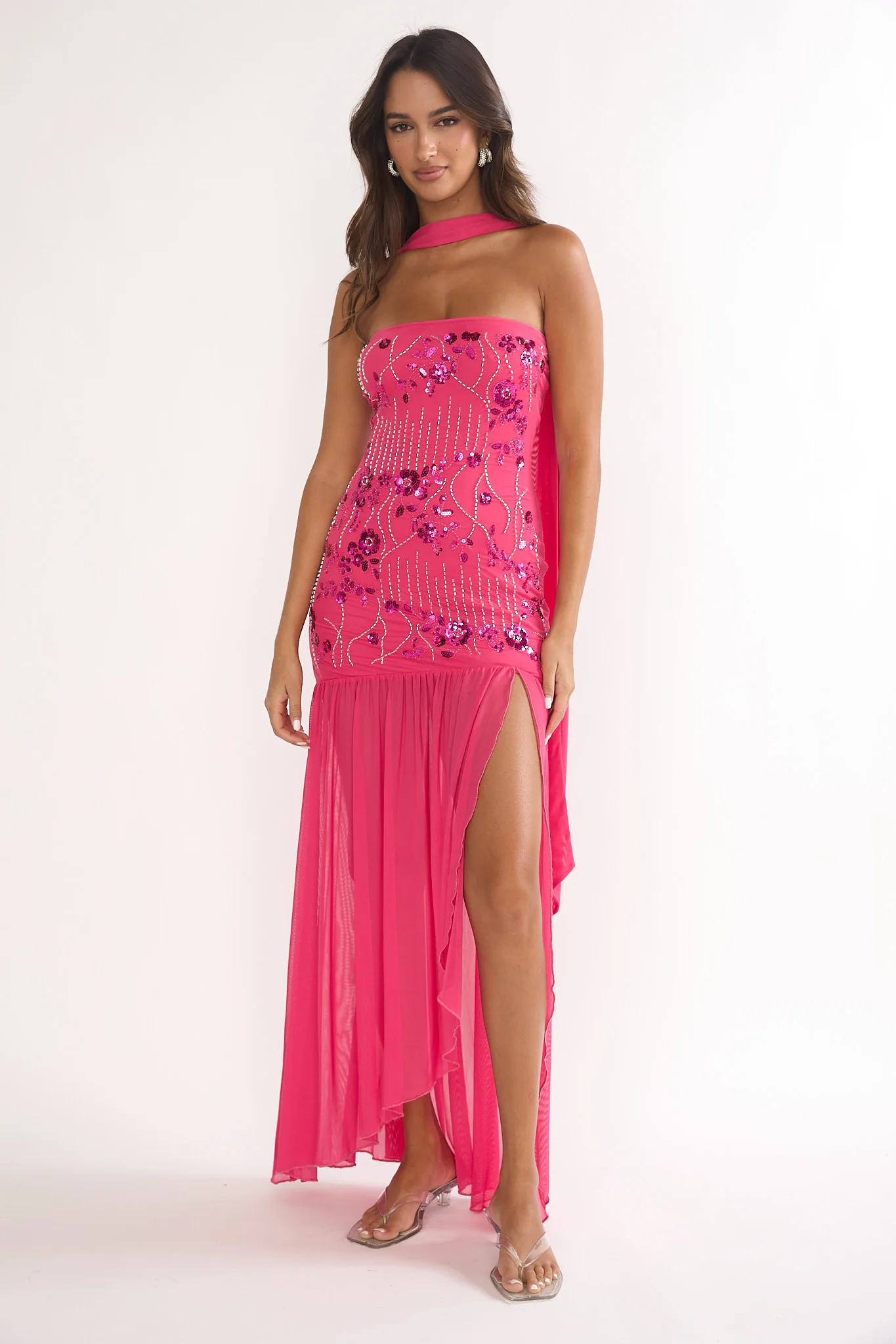 Jezra Strapless Sequin Embellished Maxi Dress Plum