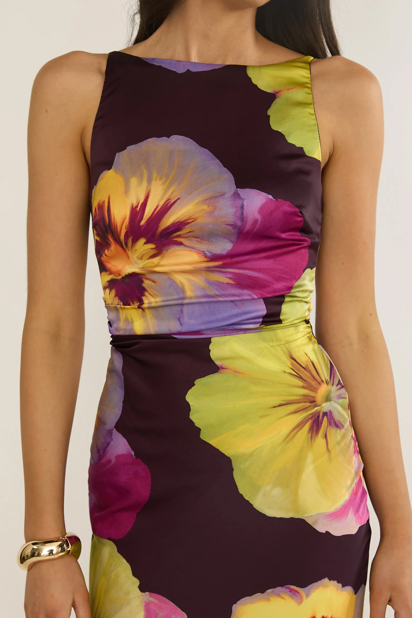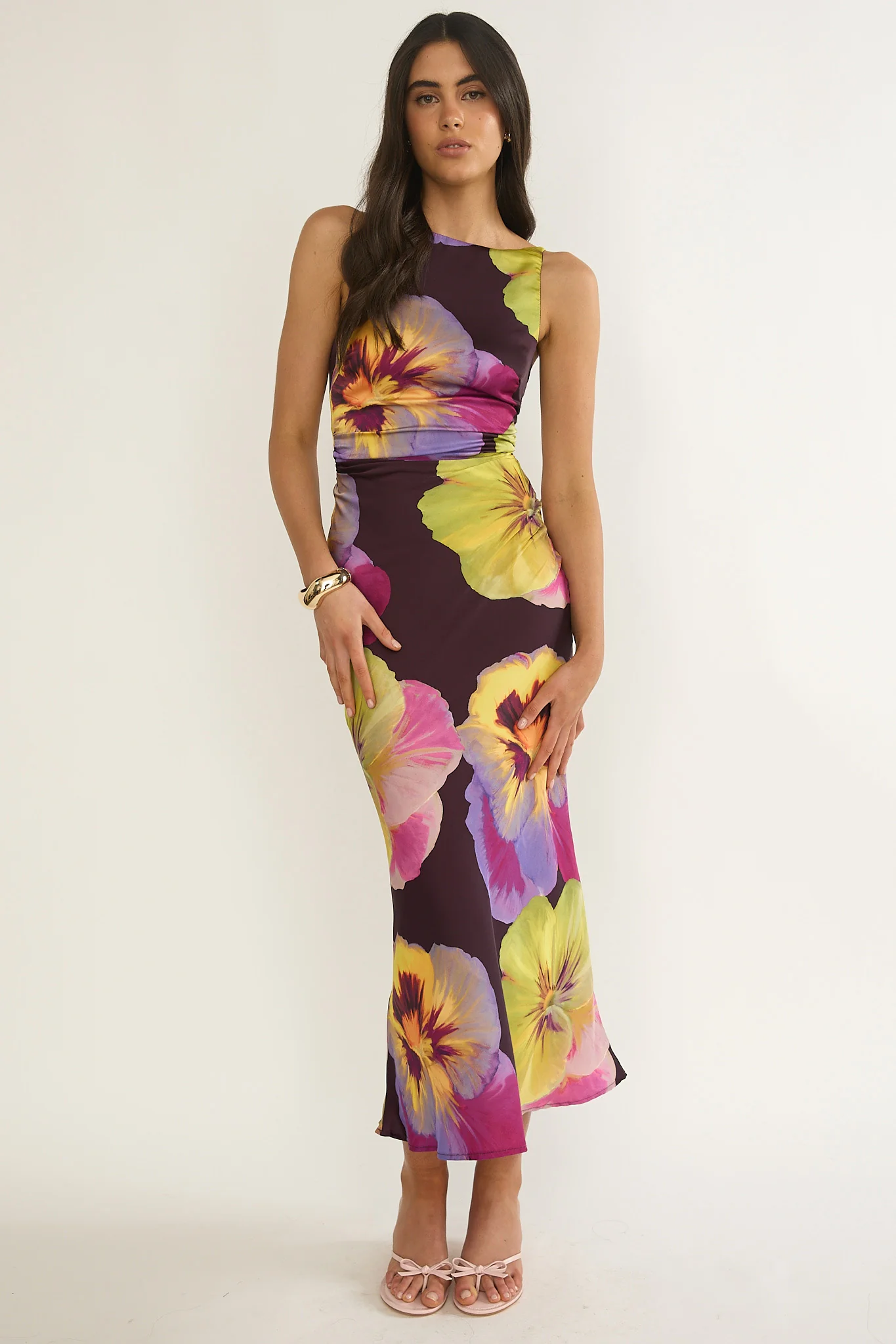 Floating Strappy Low Back Maxi Dress Pansies Plum