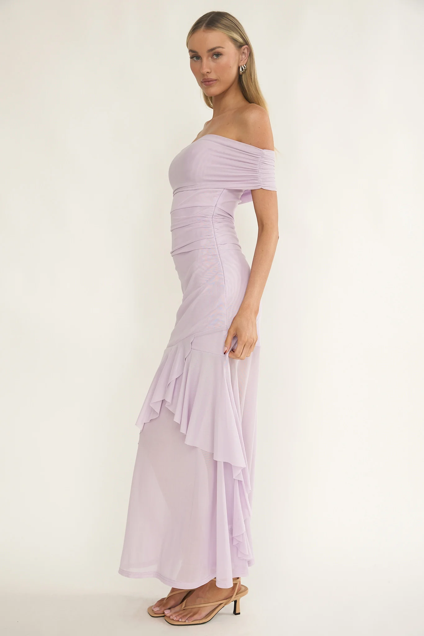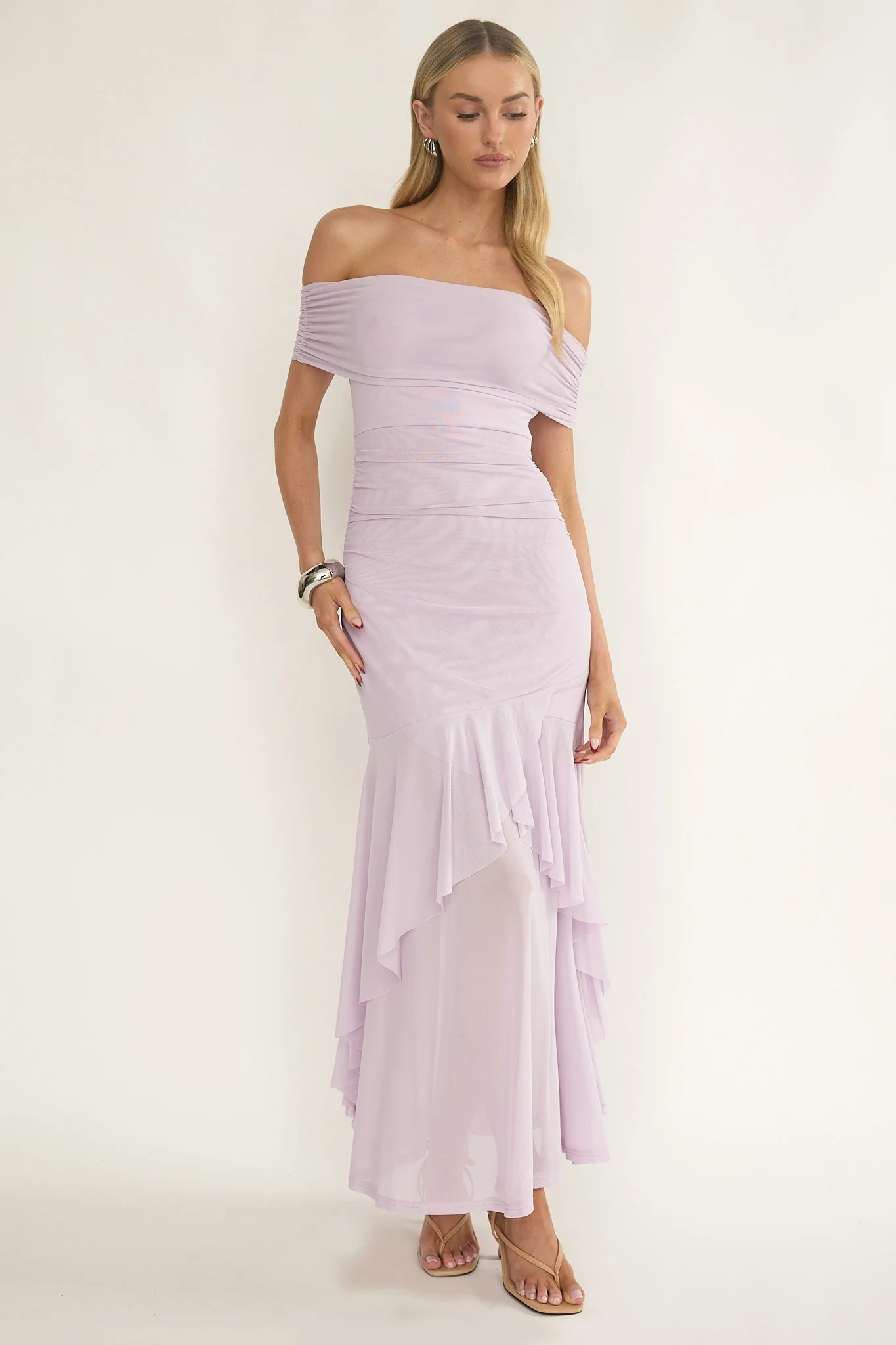 Kiarna Off-Shoulder Mesh Maxi Dress Lilac