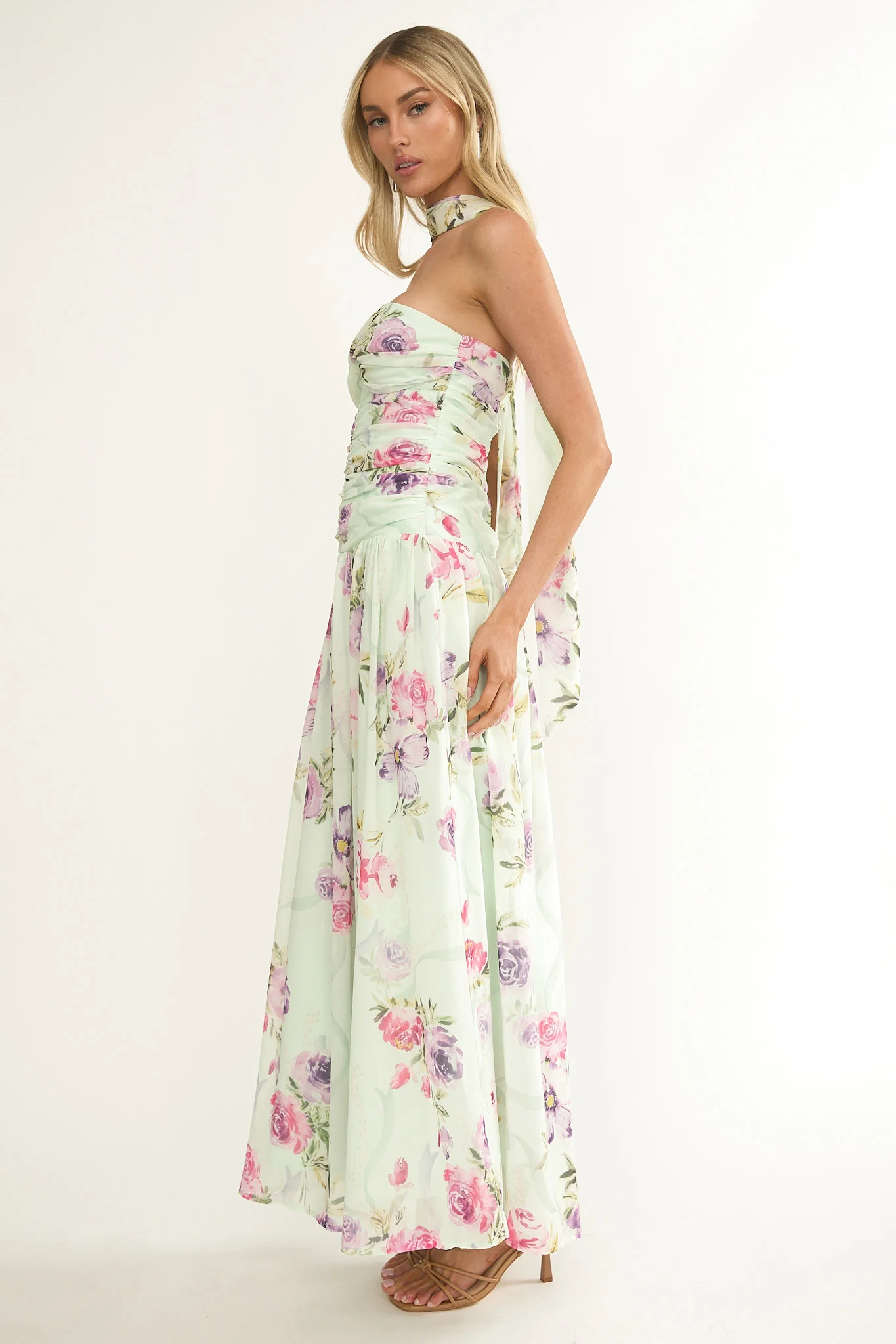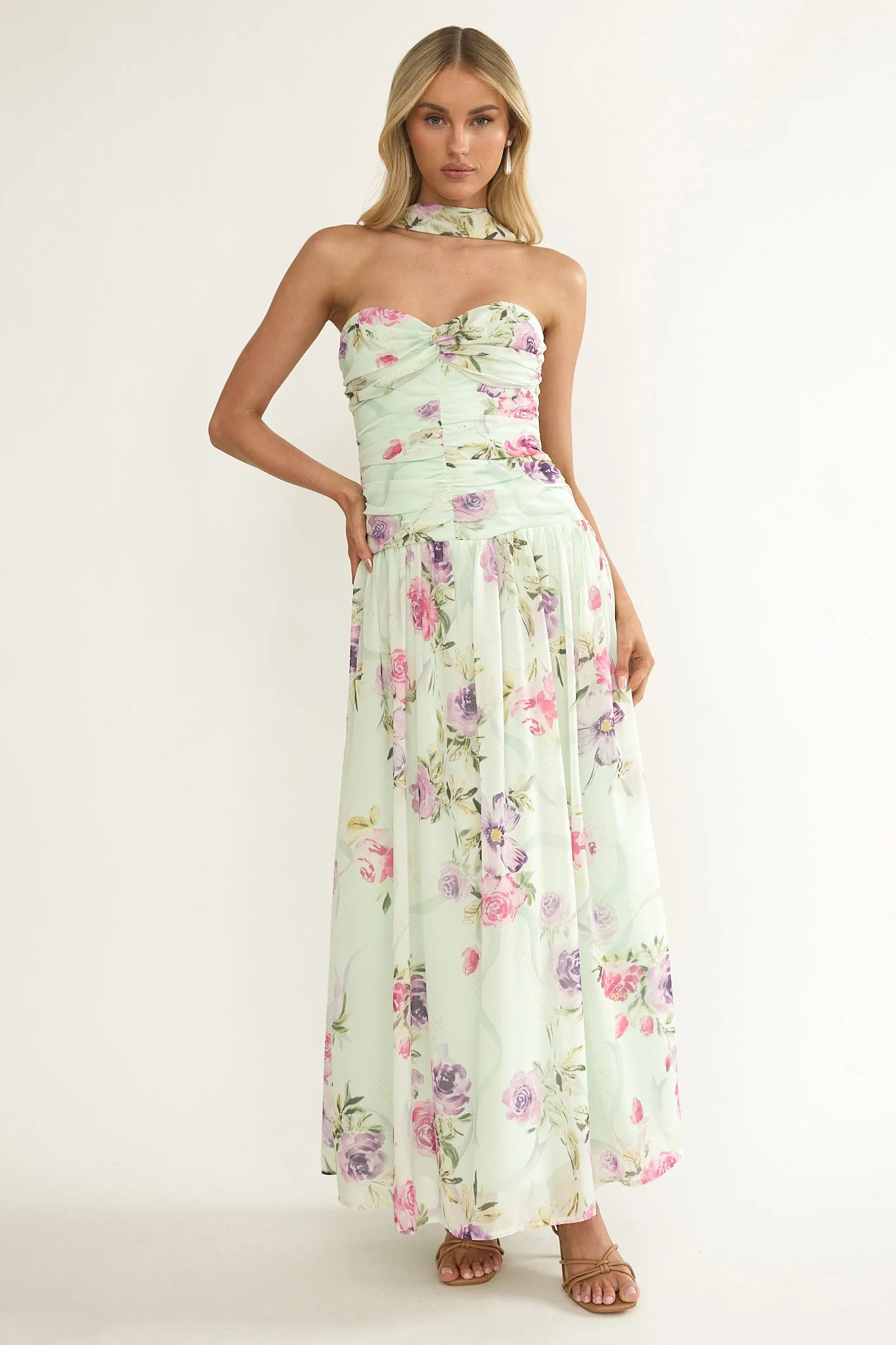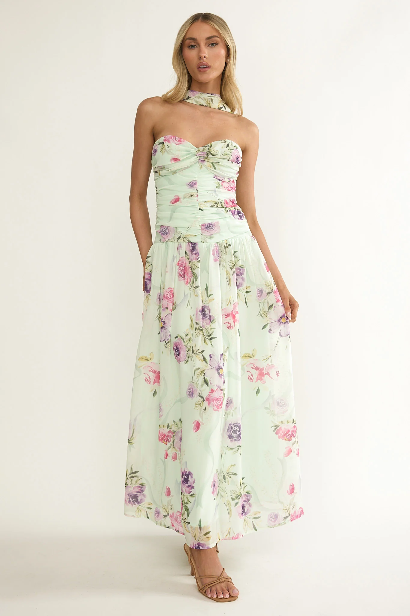 Novarra Twist Bust Strapless Maxi Dress Floral Mint
