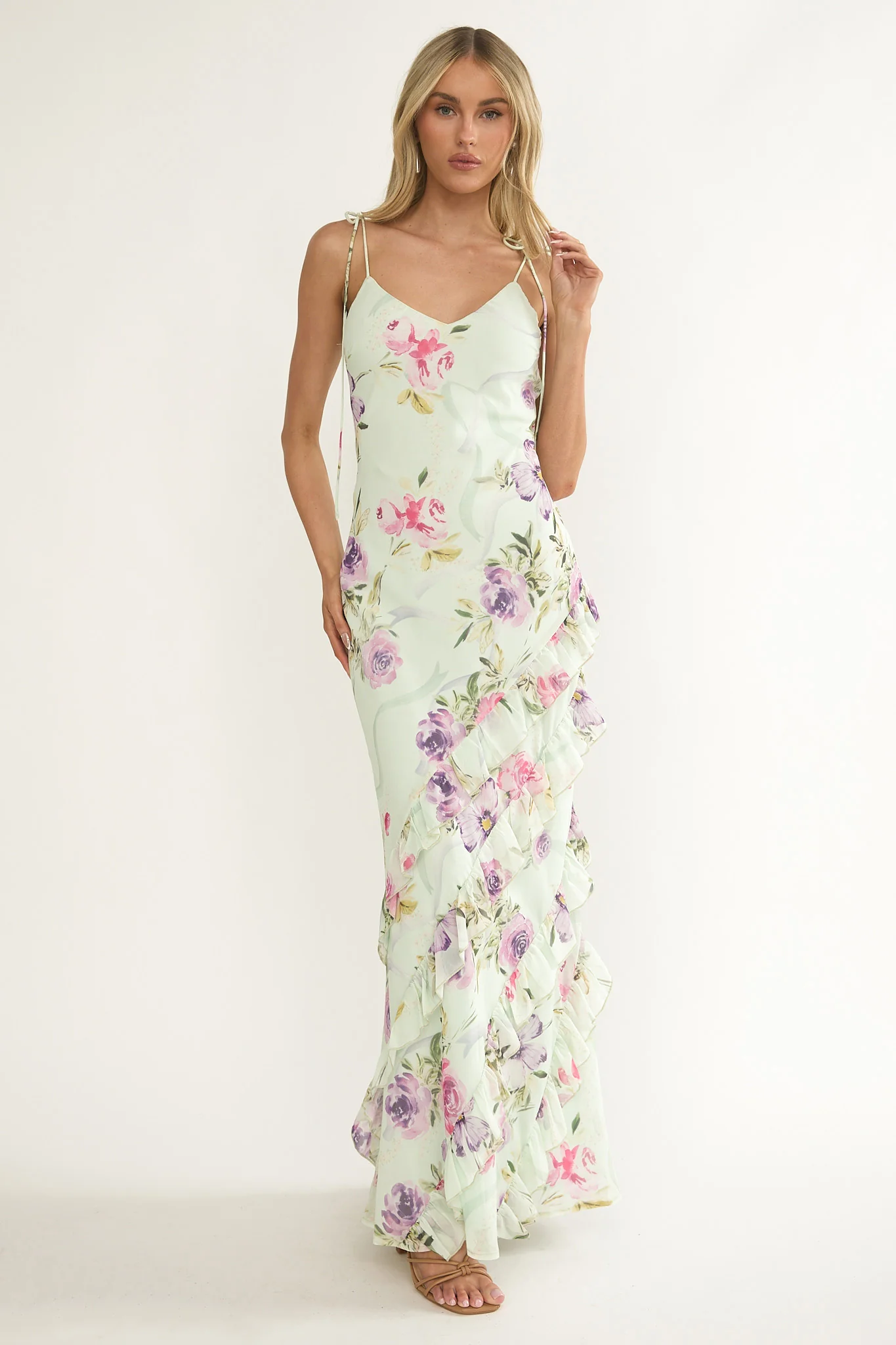 Dreamy Day Ruffle Trim Maxi Dress Mint Floral