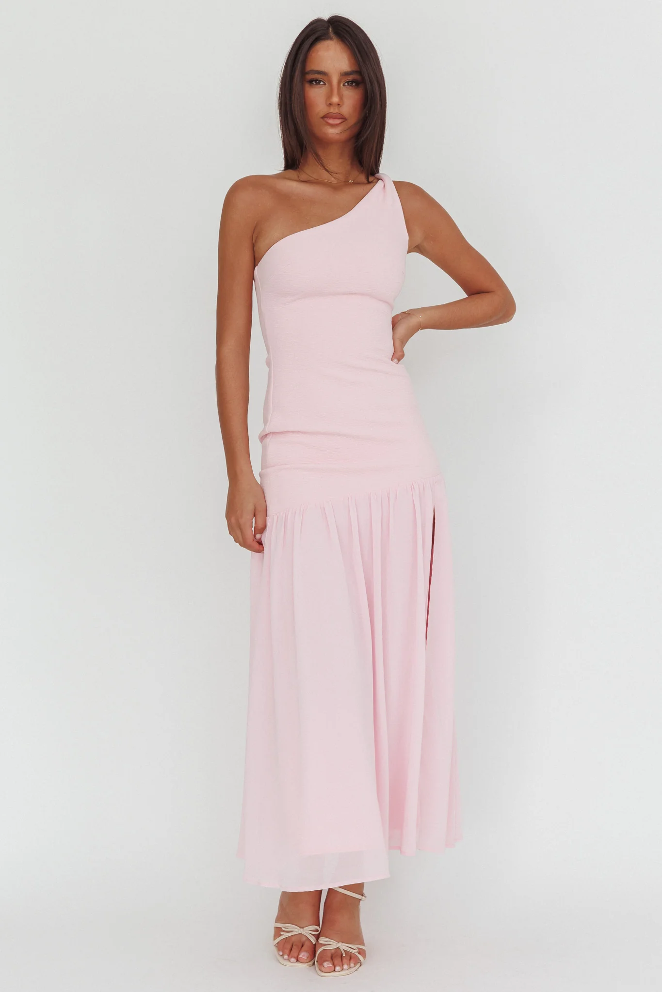 Lights On One-Shoulder Drop Waist Maxi Dress Pink