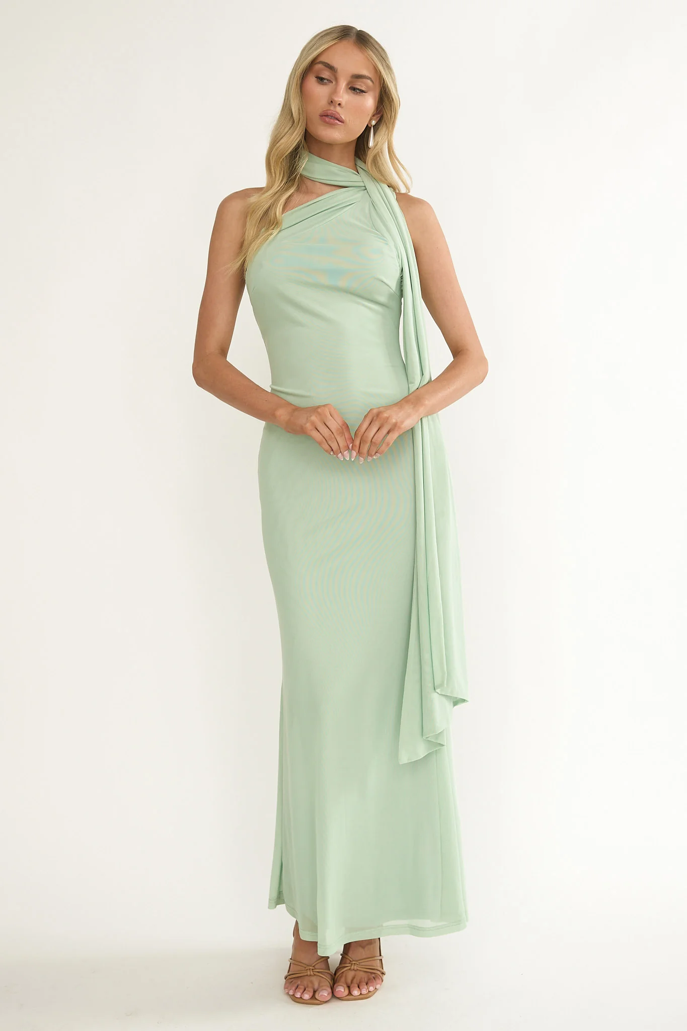 Ilyse Neck Scarf One-Shoulder Maxi Dress Mint