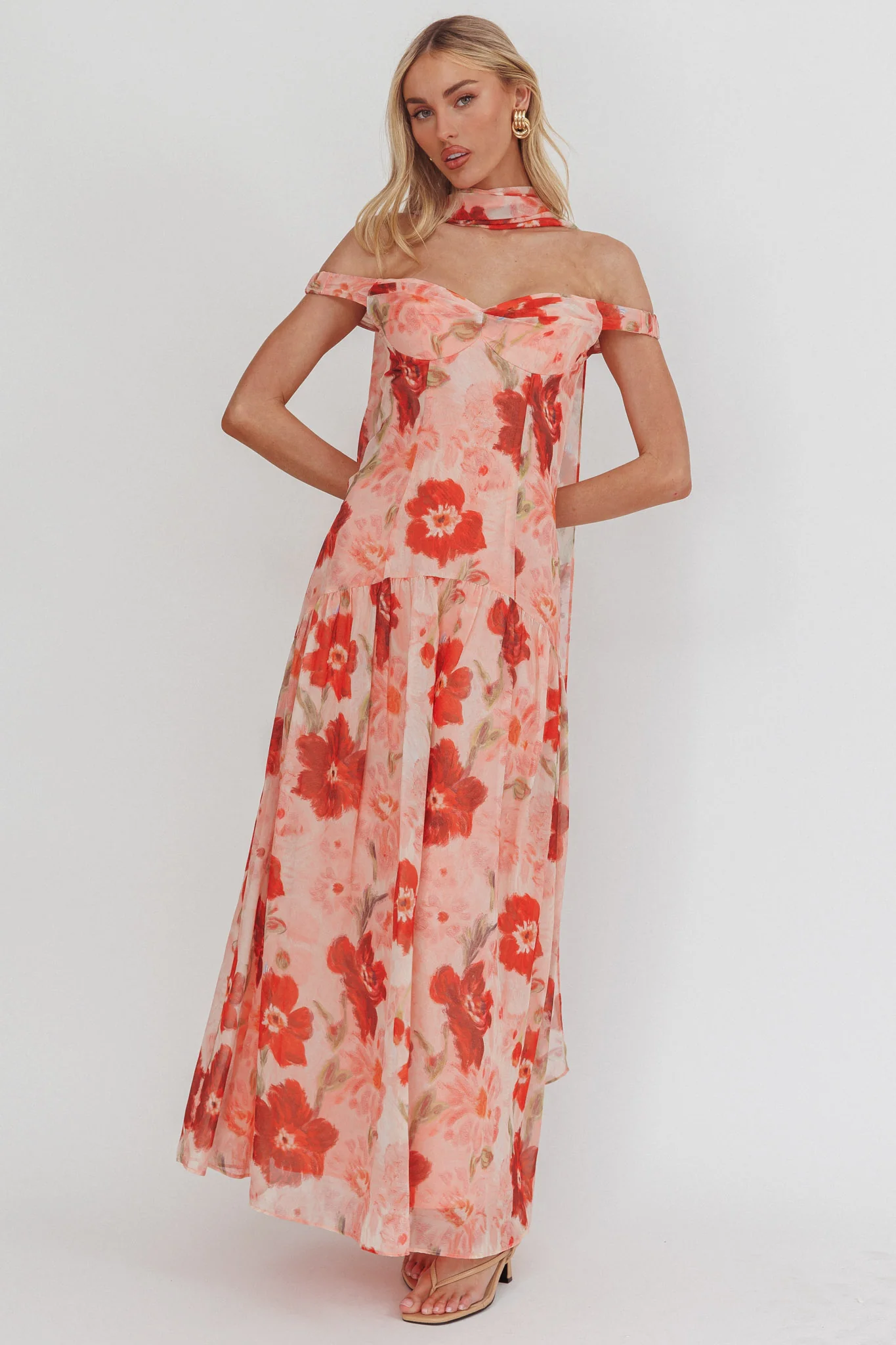 Scarlet Off-Shoulder Ruffle Trim Maxi Dress Butter
