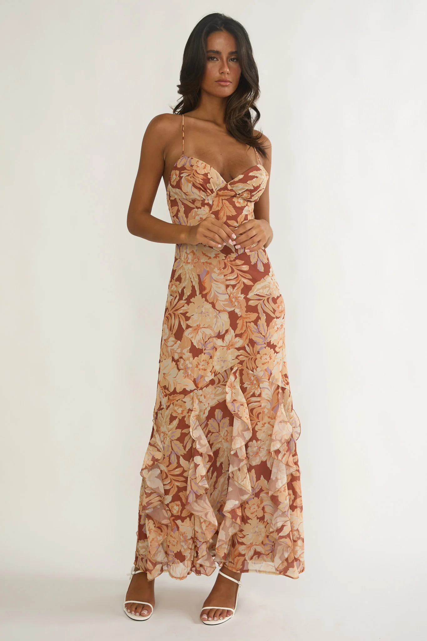 Charlisa Strappy Back Ruffle Maxi Dress Floral Yellow