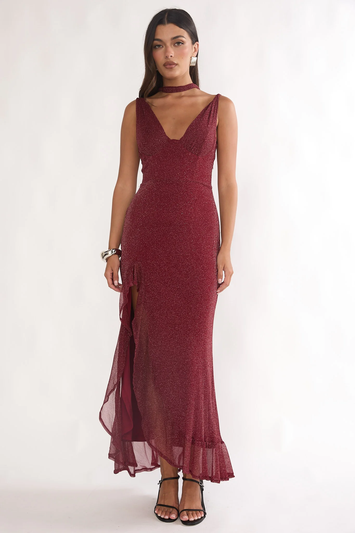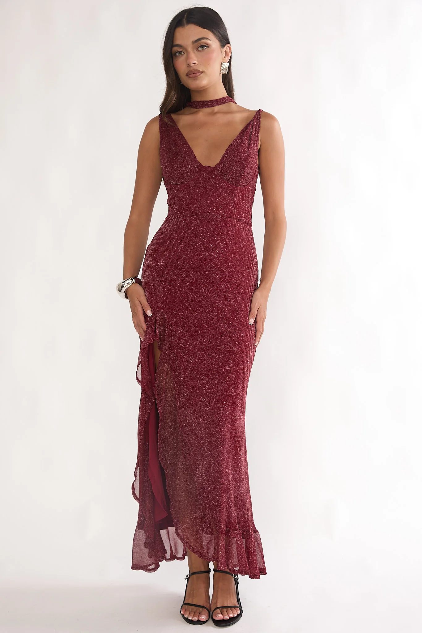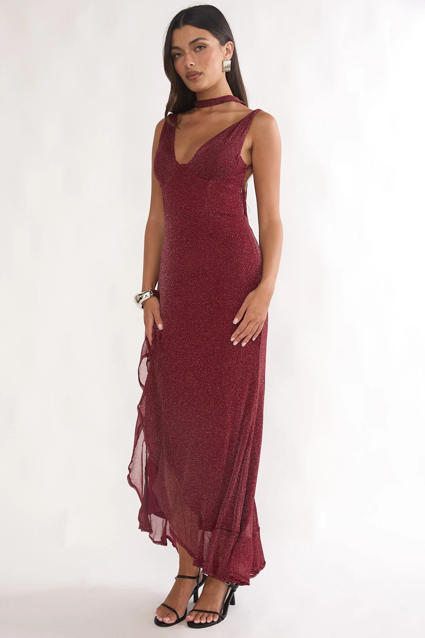 Cabernet Halter Maxi Dress Wine Sequin Wine