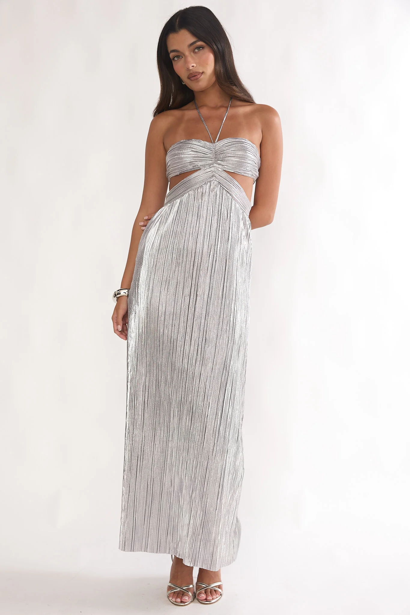 Isle Cut-Out Halterneck Maxi Dress Silver