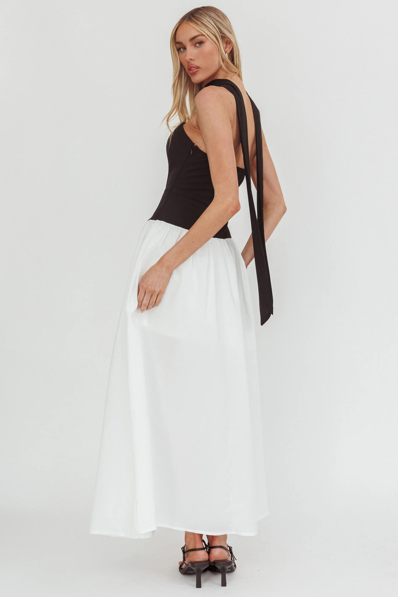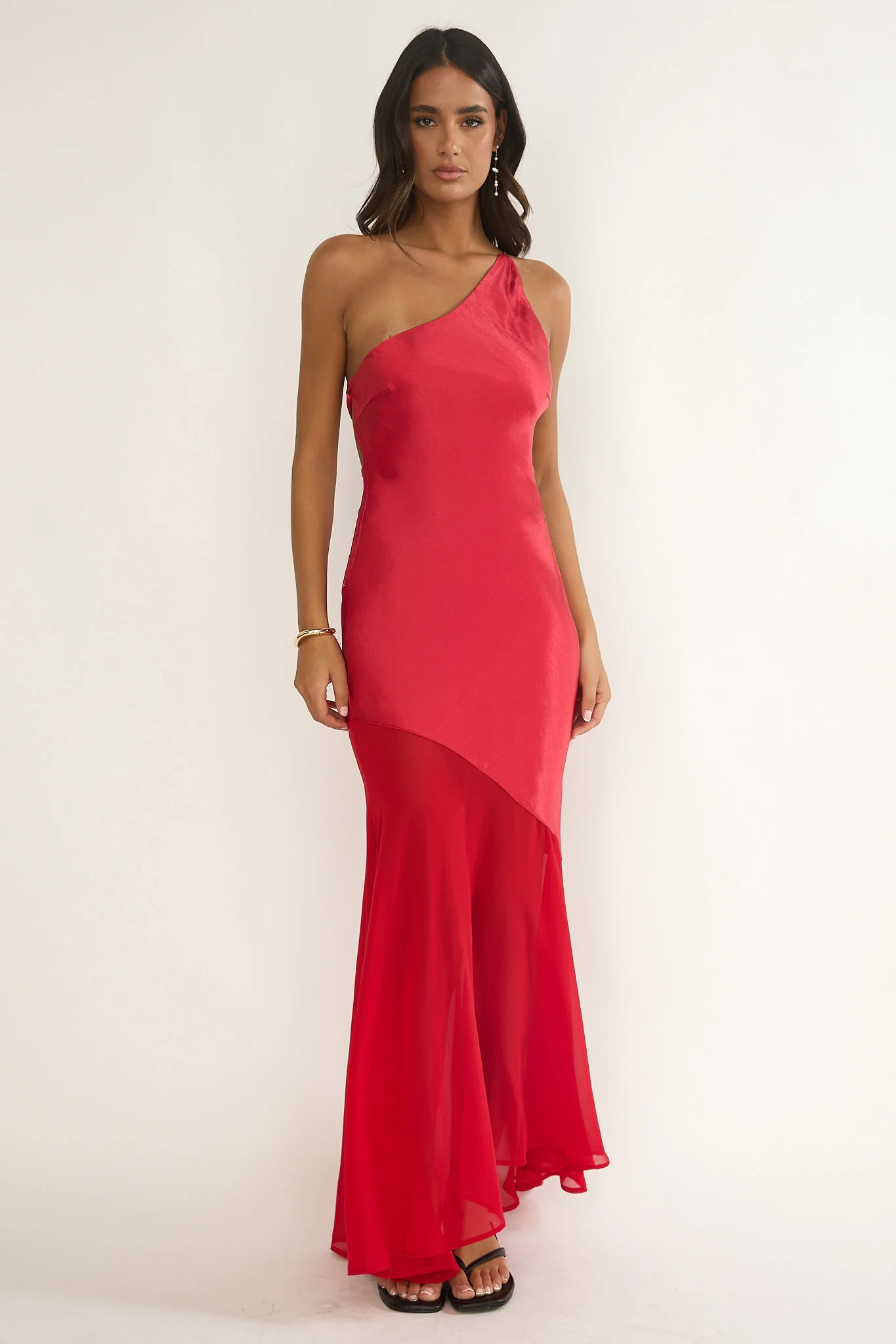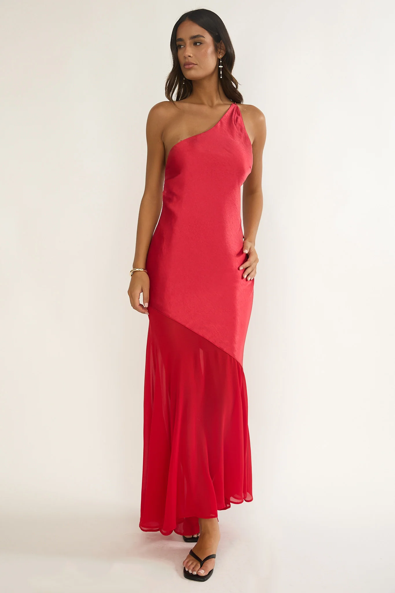 Mireya One-Shoulder Sheer Hem Maxi Dress Red