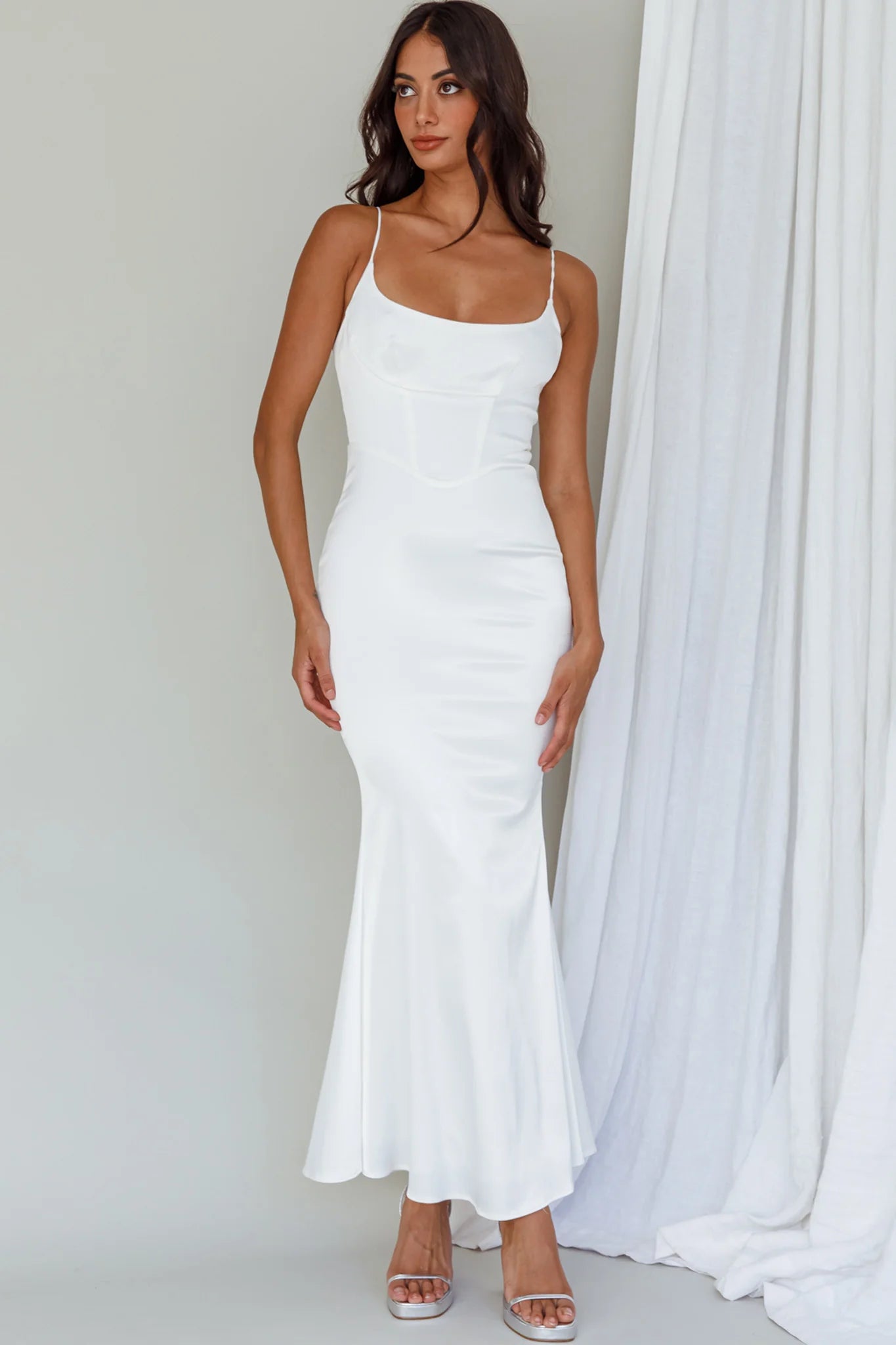 Steal the show in our gorgeous Moon Rising maxi dress. We are in love with its structured bodice and soft, satin fabric. Perfect for the modern bride or prom! Team it with clear heels and a clutch for a stunning look that will turn heads.