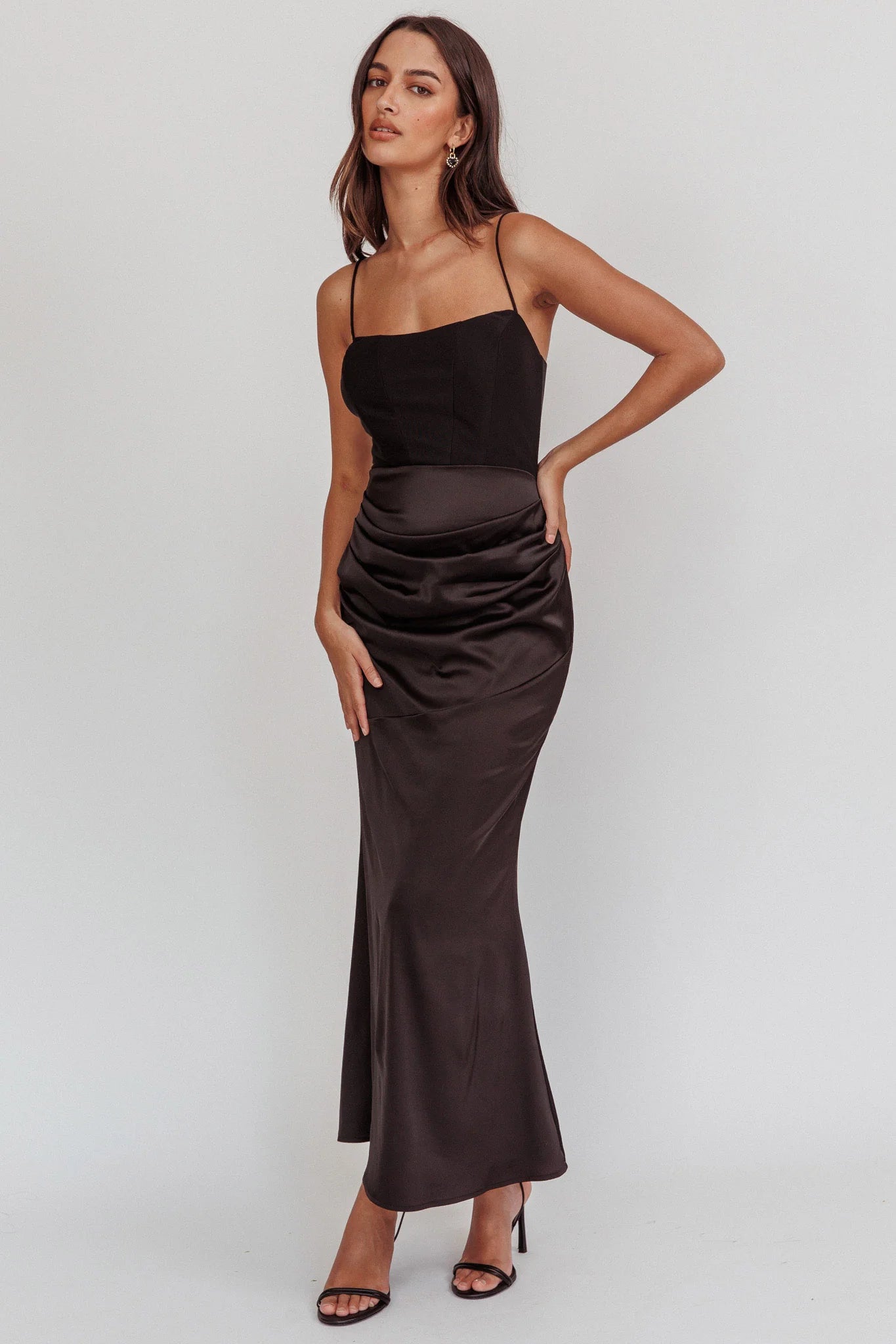 You will stop the show in our gorgeous Morella maxi dress. It features a pretty, draped satin insert in the waist and is perfect for a bridal shower or special occasion. Team it with black heels and a clutch for a head-turning look.