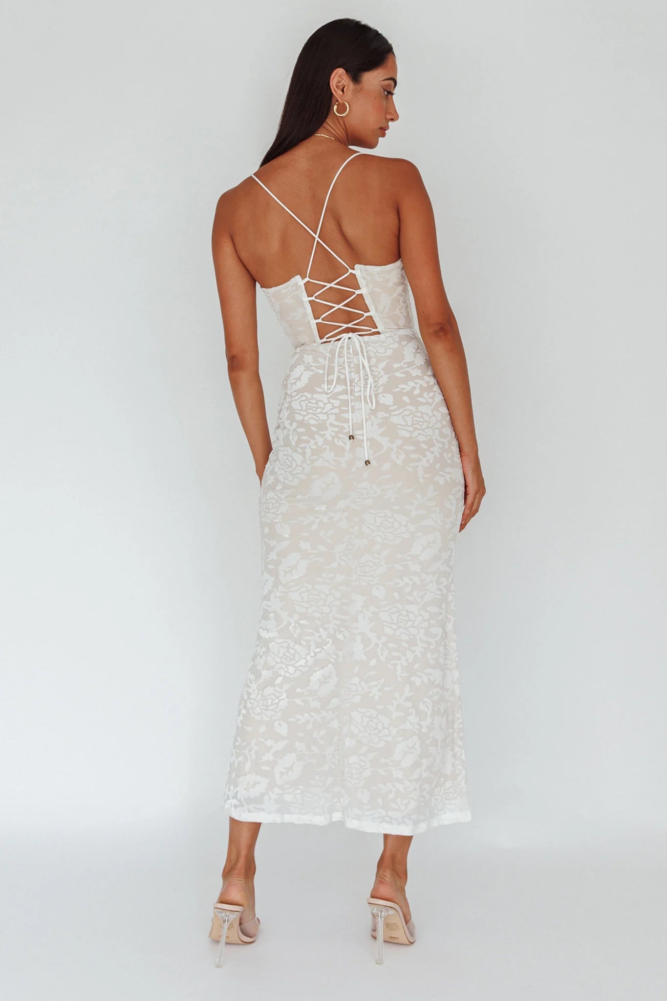 Steal the spotlight in our stunning Nouveau midi dress. Featuring a unique U neckline and a pretty, lace-up back. Perfect for a birthday or a romantic date night with your lover. Team it with diamante heels and a clutch for an unforgettable look.