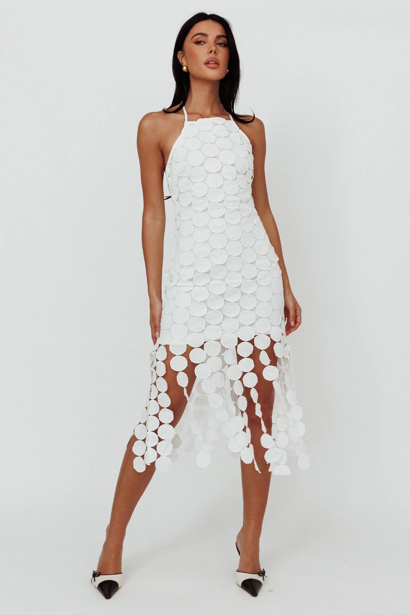 Jaws will drop when you walk by in our gorgeous Taking Chances mini dress. We are head over heels for the embroidery circle overlay! Perfect for a chic lunch with your girls teamed with kitten heels and a saddle bag for a look that will leave them speechless.
